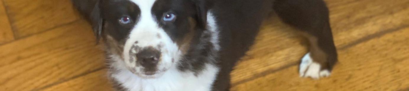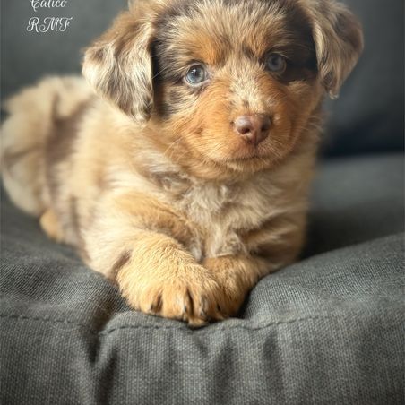 The sweetest gal!!! Extremely happy and always ready for snuggles!!! Calico is such a gorgeous puppy!!!! Looks like one blue eye and one blue/green eye 😍