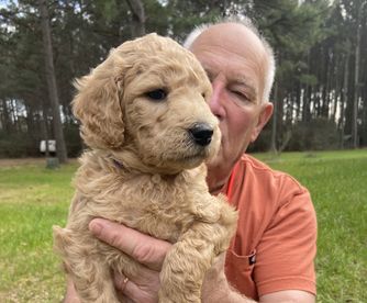 I'm James H., the breeder behind PA Farm located in Plantersville, TX. Our doodles are DNA and Health tested, they are raised in a family environment. We have one female, Maggie. We use an exceptional stud that is also DNA Test. We have one litter per year. We breed our Doodles on 20 acres of beautiful farmland.