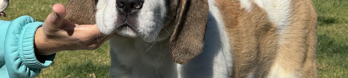 Apple is a female Saint Bernard. Carefully selected as a great representative of her breed, Kellie decided to make her part of their program. Kellie has passed Good Dog’s screening process, which involved a review of their breeding practices, environment, and the mental and physical health of their dogs.