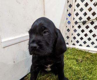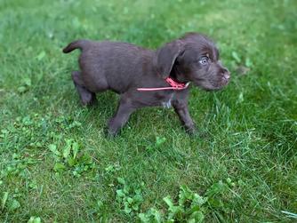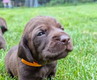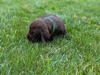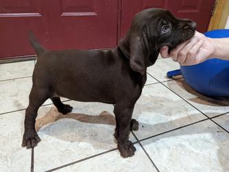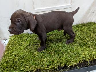Our puppies include liver and black. Colors will vary depending on the parent dogs.