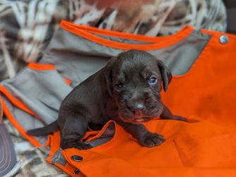 “The price includes a 2 year inheritable disease health guarantee that can be extended to 5 years if the owner submits pennhip hip dysplasia screening after 18 months of age, microchip, NAVHDA registration, worming, 1st set of immunizations, puppy health certification, puppy socialization, 1 year membership to the North American Pudelpointer Society , 1 year NAVHDA international membership, and lifetime, unlimited virtual and in person training assistance and support and our exclusive NAVHDA testing incentive program. deposits are due at approval of your application. refundable up until the litter whelp. If there is not a puppy that is a good fit for you from that particular litter your deposit will be returned or you may push to the next litter.”