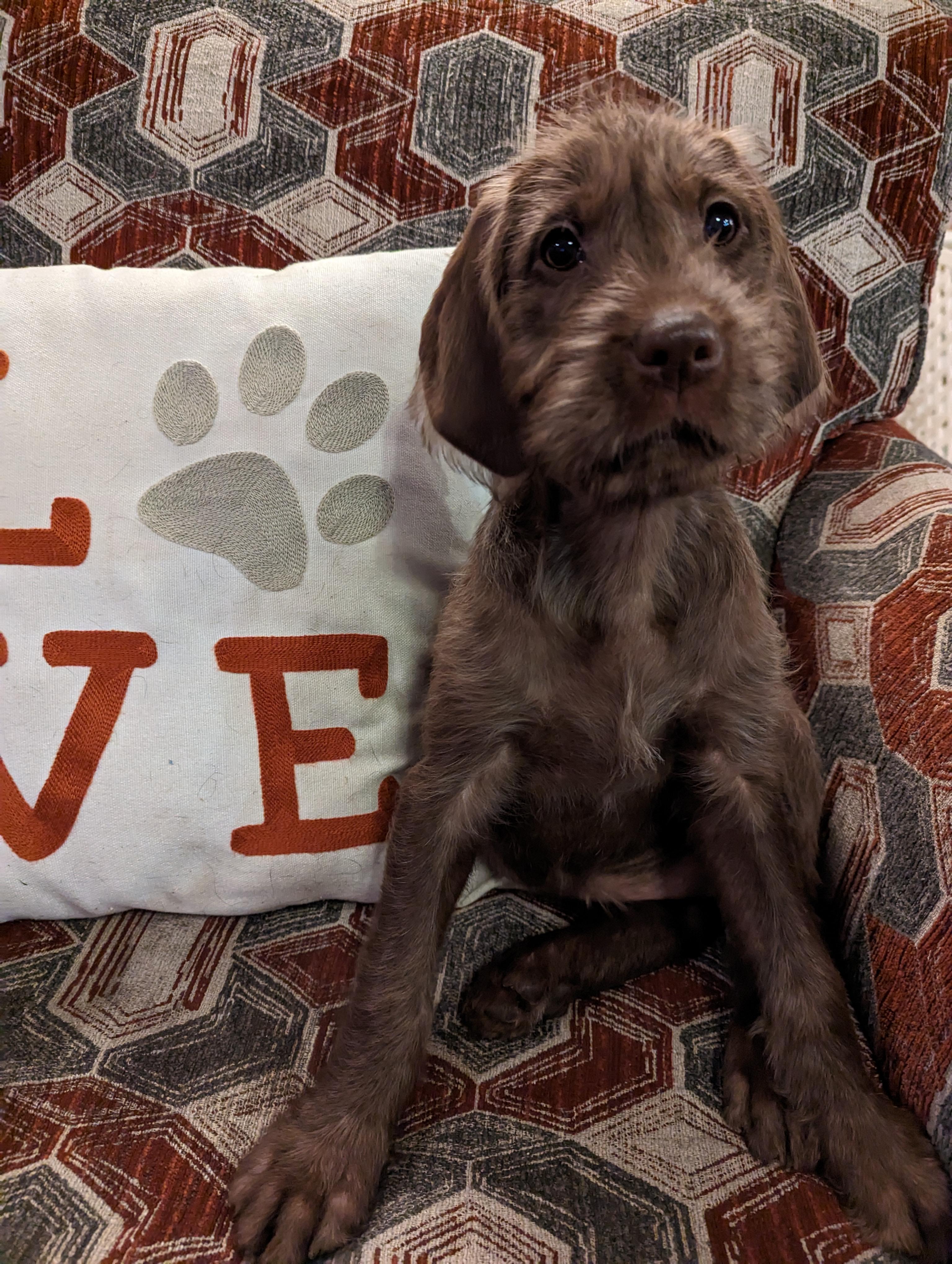 Phin is a male Pudelpointer about 4 years old. Carefully selected as a great representative of his breed, Joe decided to make him part of their program. Joe has passed Good Dog’s screening process, which involved a review of their breeding practices, environment, and the mental and physical health of their dogs.