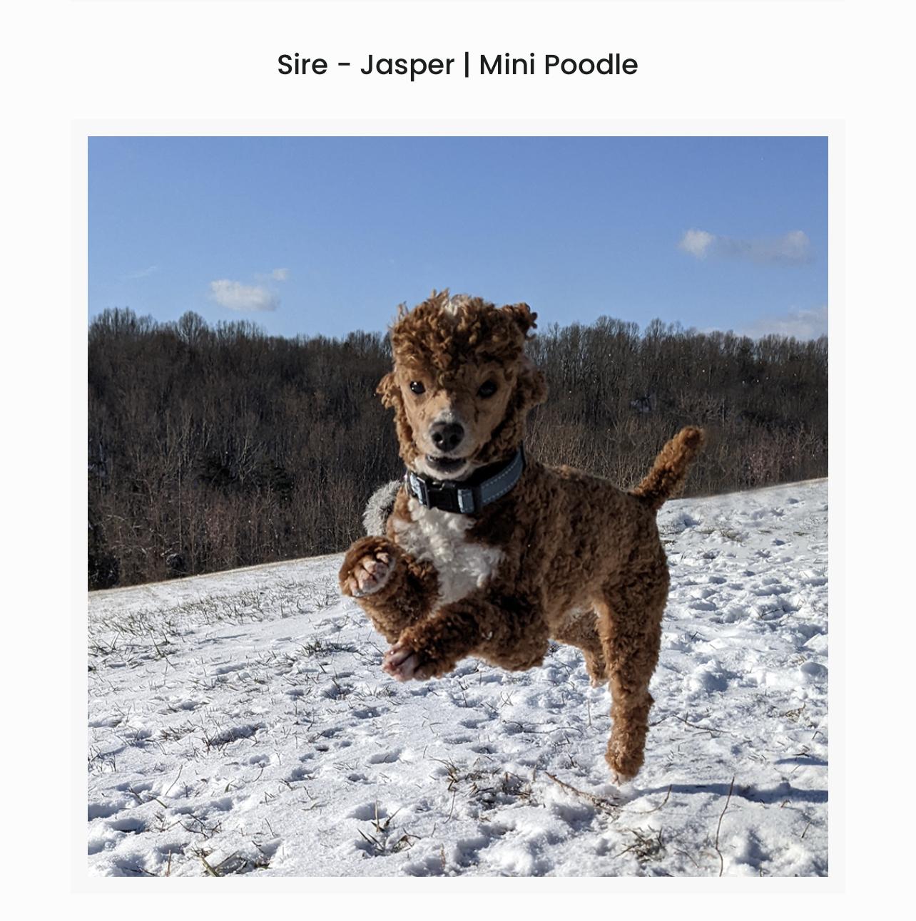 Jasper is a fun loving toy poodle that has never met a stranger! He is very smart and well trained. Jasper is our main sire and his puppies are calm with gorgeous markings!