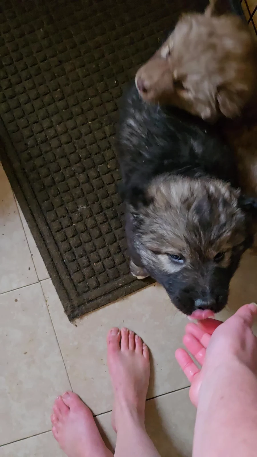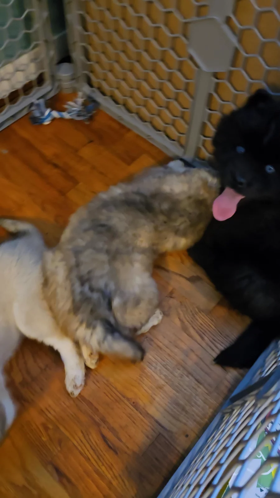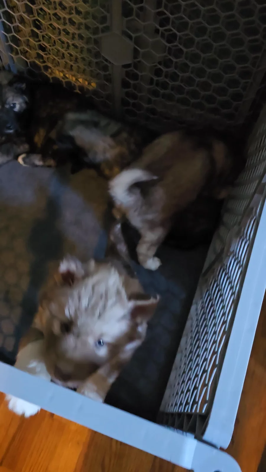 Sabrinas babies not happy i moved them to new pen lol but they get use to it soon:) started on doggie door training we will slowly close it they they using it on there own:) we will be switching to stright hard food by 6weeks old we will slowly start adding less and less milk/water mix