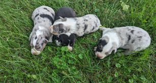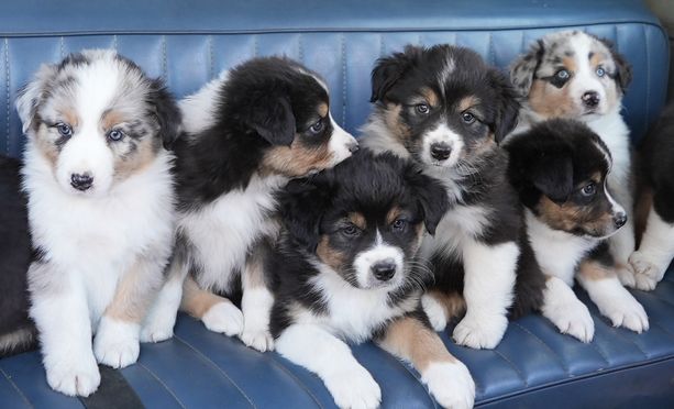Our puppies include black, red merle, blue merle, and red. Colors will vary depending on the parent dogs.