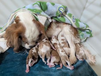 Our puppies include blenheim, ruby, black and tan, and tri-color. Colors will vary depending on the parent dogs.