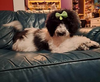 I'm Tara S., the breeder behind Painted Doodles and Poodles LLC located in Columbiana, OH. Each puppy is loved and cared for to the highest standards. Most are potty pad trained before leaving. Our adults live a very spoiled life indoors, but also have seven acres of invisible fence to roam on. They also get to go on many camping and travel adventures with us.