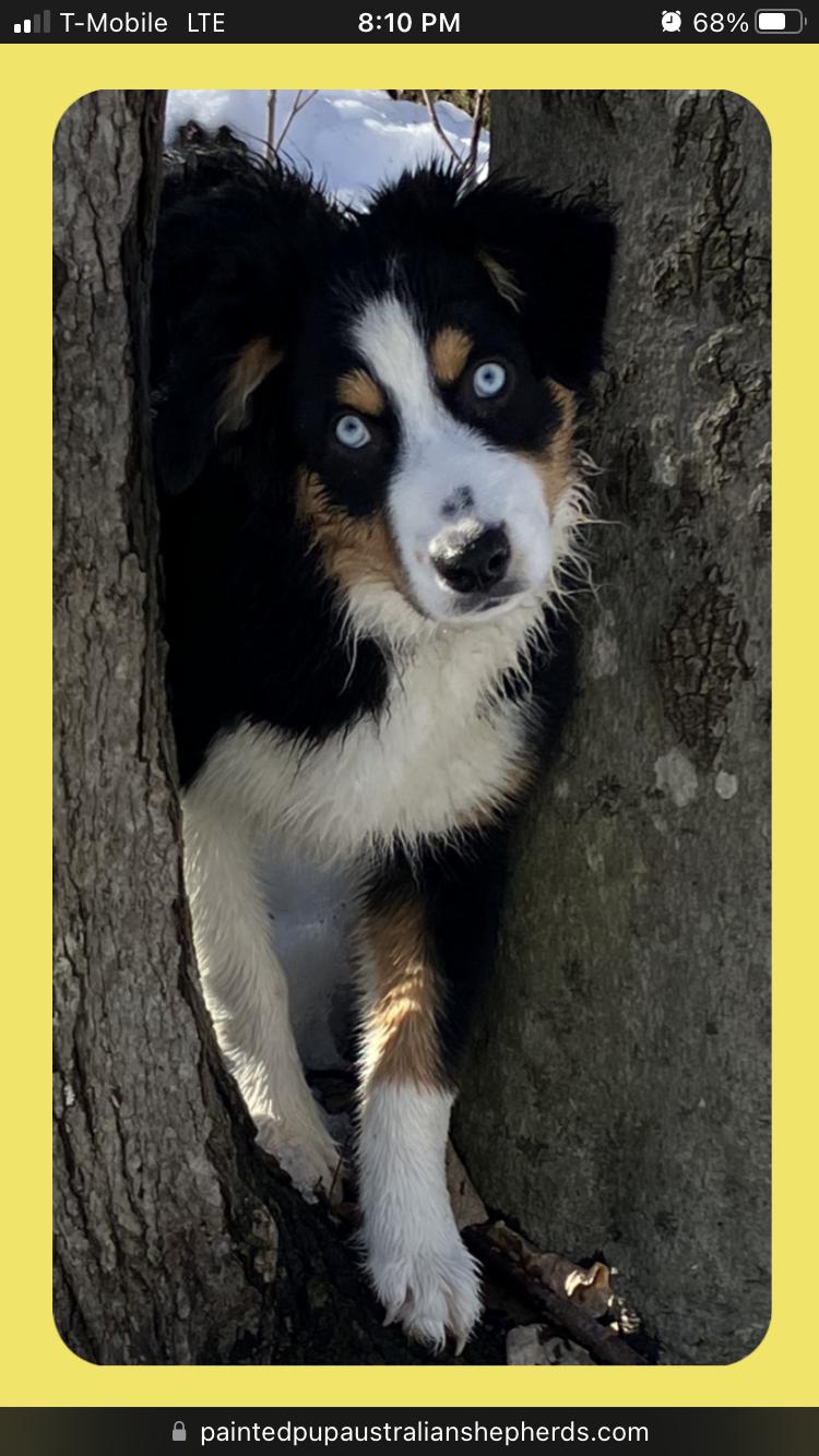 I'm Alyssa P., the breeder behind Painted Pup Australian Shepherds located in New Boston, NH. All of our dogs are loved as family members. We cherish our puppies from birth up until they leave our arms to snuggle into yours! We are dedicated to always providing our buyers and our puppies with a positive experience, which includes remaining committed to responsible practices when it comes to breeding, training, and rehoming our puppies.