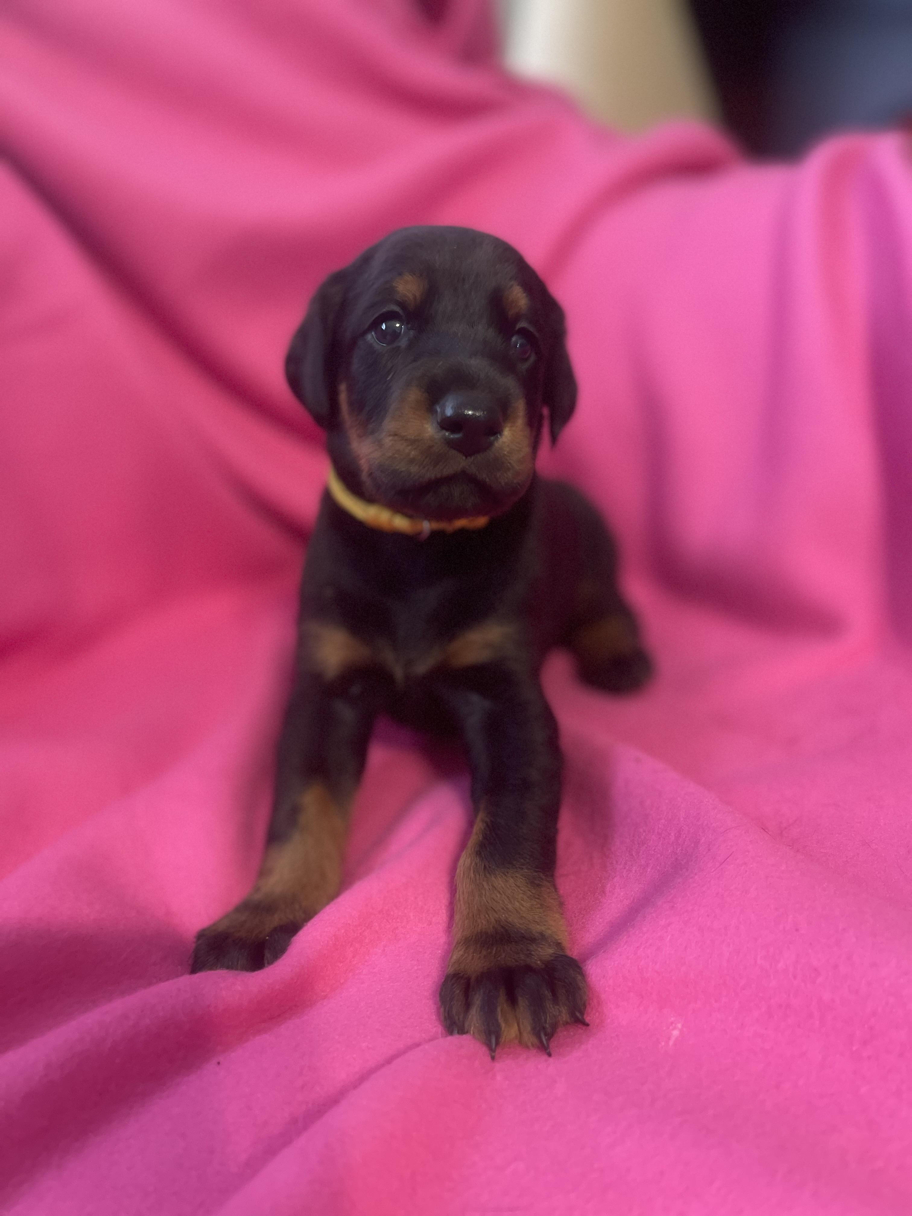 Initially skeptical about purchasing a dog online, my doubts vanished after meeting Tanya. She's a lovely and exceptional lady, always ready to help with any questions. If I decide to get another puppy Doberman, I won't hesitate to contact her again.