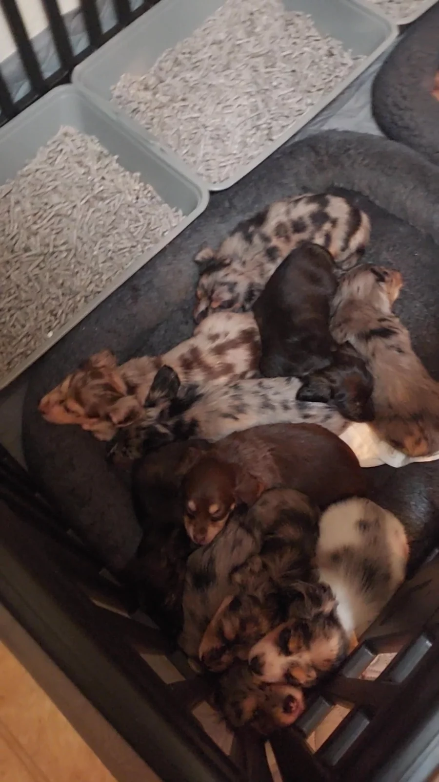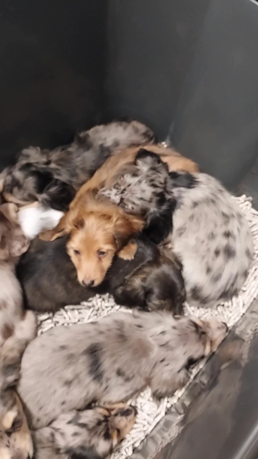 Opie is a happy-go-lucky guy that is such a joy to be around. He loves everyone he meets and gets along great with other dogs. Opie loves to do little prissy twirls when he's excited, which is super cute! 🥰 He is smaller, only weighing about 9lbs. Embark test results are Chocolate/Tan Extreme Piebald Rr Roan Longhair carrying for Dilute. He is PRA clear but does carry for recessive DM. Gensol testing can be done at buyer's expense for any of his offspring potentially going to a breeding program. Ask for details!