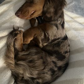 I have always loved animals of all kinds, especially dogs. My husband and I both grew up with Dachshunds, so naturally they are the breed we love and gravitated towards raising. They are tenacious, spunky, loyal, and entertaining as well as being the BEST cuddle bugs and bed warmers in the world! We know you will love an addition (or two! 😉) just as much as we do our's! ❤️