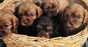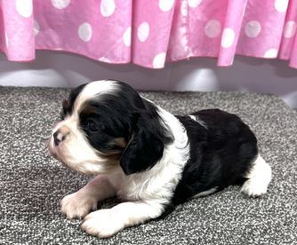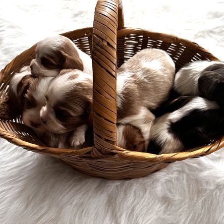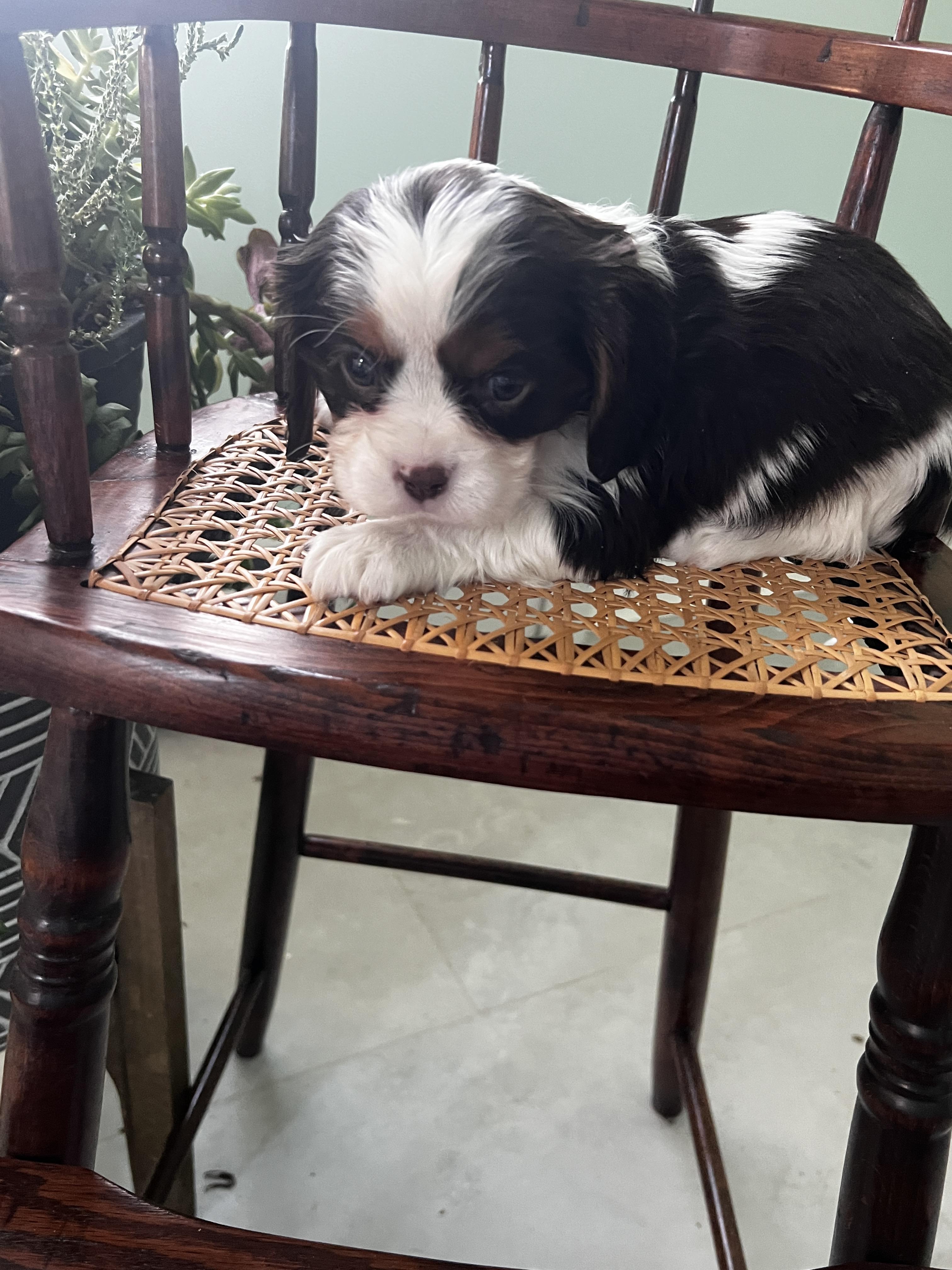 Our puppies include blenheim, ruby, tri-color, black and white, black and tan, and chocolate. Colors will vary depending on the parent dogs.