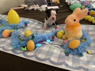 I'm Margaret K., the breeder behind Palmetto Bostons located in Aiken, SC. Our Boston Terriers are home-raised. We put a lot of care into socializing them so they can transition easily into their homes. Our puppies become integral members of our family. They’re a daily part of everything we do until they’re ready to join their forever families.