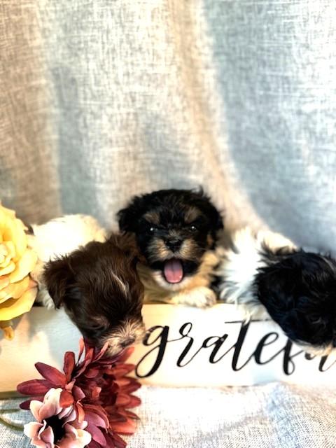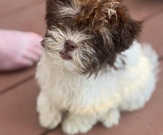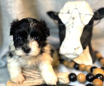 “AKC registered from AKC Champion sire. All dogs are Vet examined, up to date on immunizations and tested and dewormed as needed. They are socialized with small children, children adults and seniors. We socialize them with the animals on the farm from chickens to barn cats. They are hypoallergenic, loving and ready for their new homes as soon as the vet determines they are healthy and ready to go. Parents are responsibly bred with their health in mind and all live in the home with us. T.”