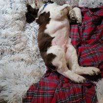 Pepper is a female English Springer Spaniel. Carefully selected as a great representative of her breed, Cortney decided to make her part of their program. Cortney has passed Good Dog’s screening process, which involved a review of their breeding practices, environment, and the mental and physical health of their dogs.