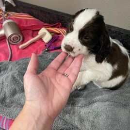 Courtney and Chris at Palmetto Springer Spaniels could not have been easier to work with. They kept us updated with the progress of our puppy until we picked her up. They have a beautiful clean facility, and are delightful to work with. We love our baby Absolut (Abbie) Mae, and highly recommend this breeder.