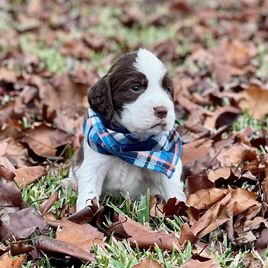 My husband and I found Palmetto Springer Spaniels (PSS) several states away. The day our application was accepted, Cortney contacted me through Good Dog messages with her phone number and we began our relationship starring little "Boy 1". We received regular updates, pictures, videos of playtime, grooming, and veterinary visits.