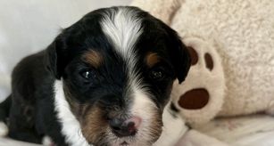 Our puppies are black tri-color. Colors will vary depending on the parent dogs.