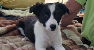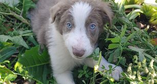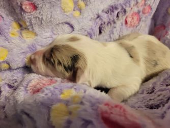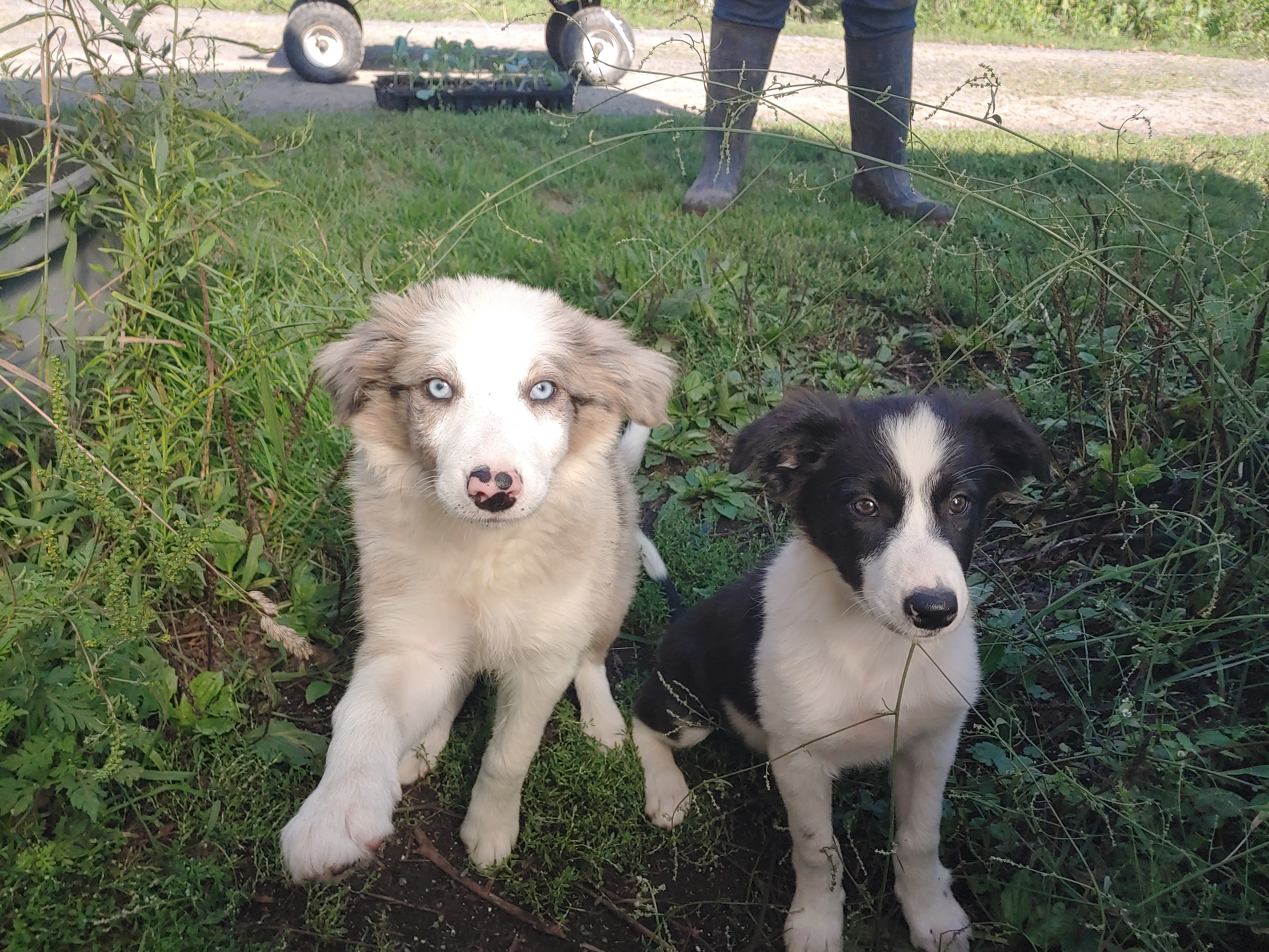 Our puppies include tri-color, black and white, and blue merle. Colors will vary depending on the parent dogs.