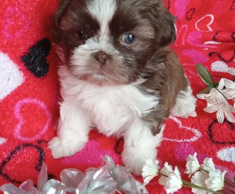 I'm Pamela C., the breeder behind Pams Precious Shih Tzus located in Sulpher Springs, TX. Been breeding shih tzus for 23 yrs. I have 6 dogs. 4 F & 2 M. I kept Rango 1 of the males from litter last yr. But Im going to find him a good home. He is choc & wh. 9 & 1/2 pounds. 9 & 1/2 yrs old.. I have a couple of litters a yr. I breed good quality & love them very much. I was inspected yearly by AKC & state of Tex license . Smoky my other male is AKC. Suki my red F is AKC. Other 3 r APRI reg. I let license go about 6 yrs ago when I found homes for my dogs that didnt breed any more. I had never sent a dog to another home in all those yrs. Very attached to them. But was getting older & knew I had to do that. It was very emotional for me. But they have wonderful homes. I have 1 puppy that is looking for a home. Archie. Brindle & wh. Pebbles & Smokys puppy. His sister got adopted. He is 9 wks old. Gorgeous!!