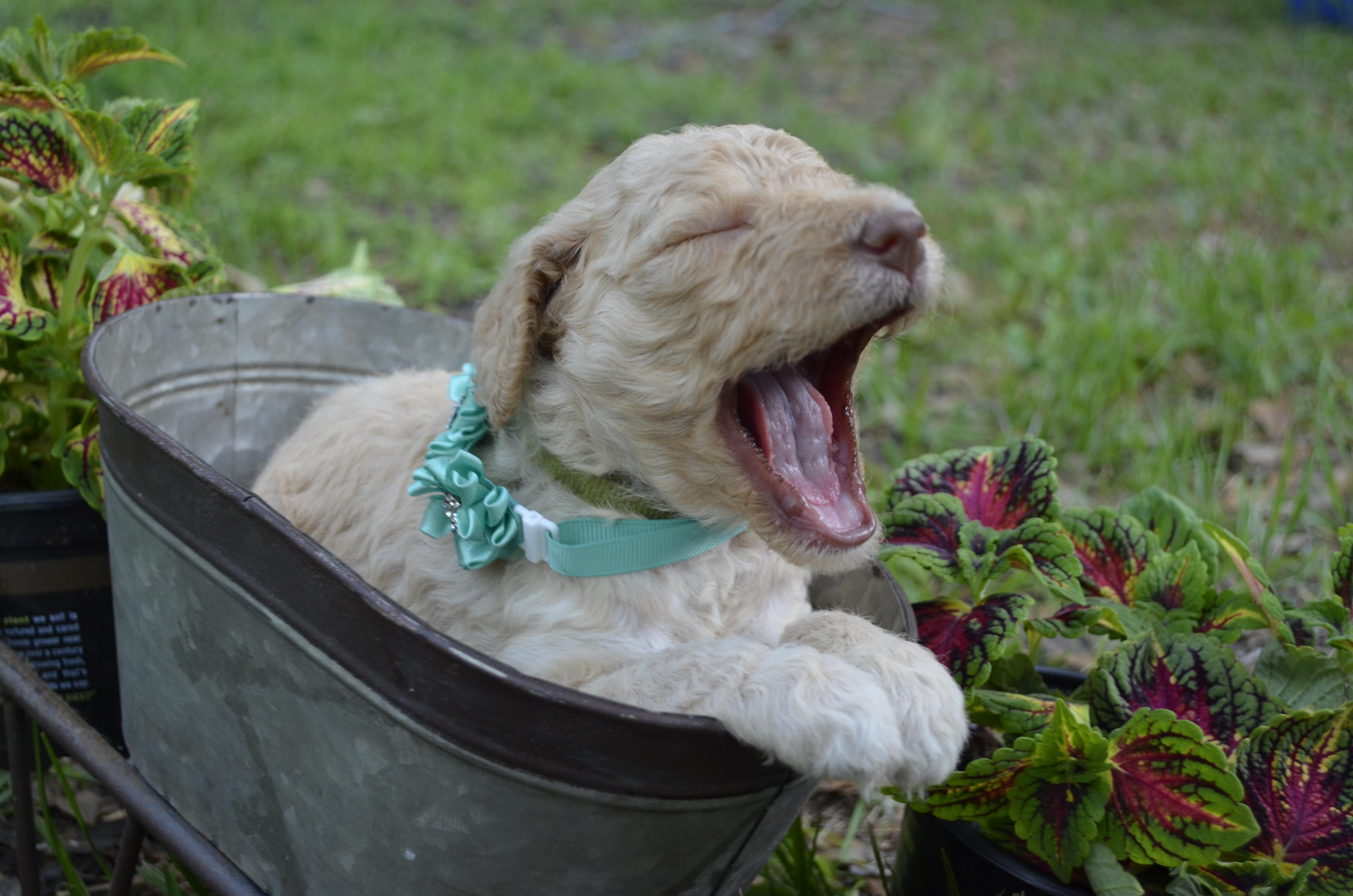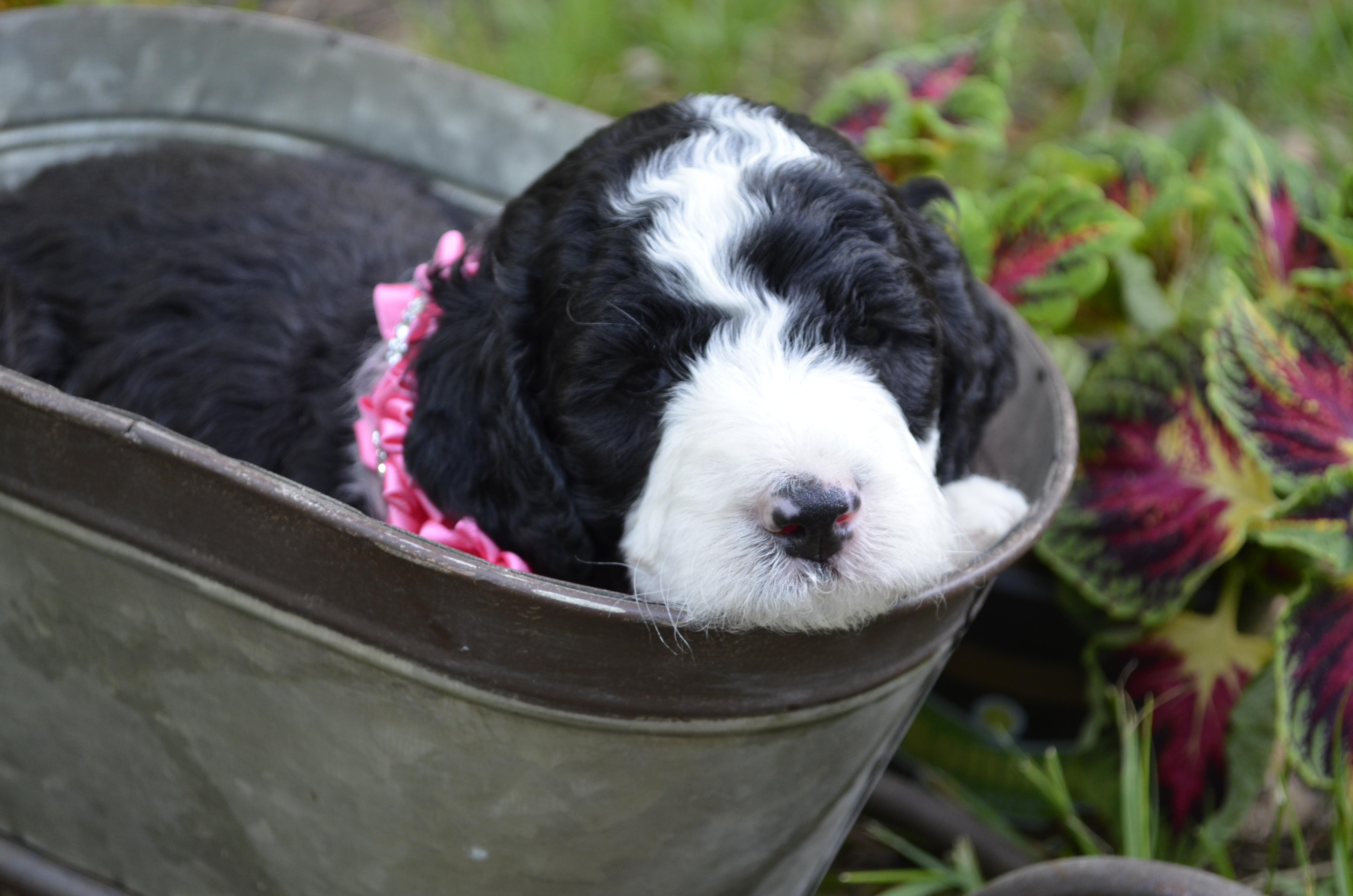 Rosie is a female Sheepadoodle. Carefully selected as a great representative of her breed, Pamela decided to make her part of their program. Pamela has passed Good Dog’s screening process, which involved a review of their breeding practices, environment, and the mental and physical health of their dogs.
