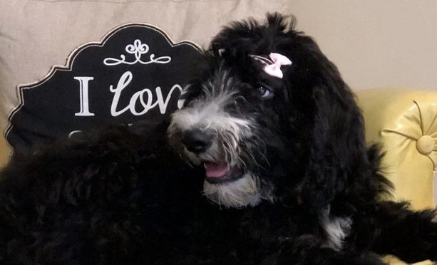 Nova is a female Sheepadoodle. Carefully selected as a great representative of her breed, Pamela decided to make her part of their program. Pamela has passed Good Dog’s screening process, which involved a review of their breeding practices, environment, and the mental and physical health of their dogs.
