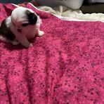 We adore our girl Pearl. She is smart, funny and the best snuggler. Potty training is coming along as expected. Pearl has a bell by the door that she rings when she has to go outside. She rings the bell often, knowing she gets a treat. New rule is - no treat unless she actually potties outside. She is a smarty! Today is her first trip to the vet to get her second round of puppy shots.