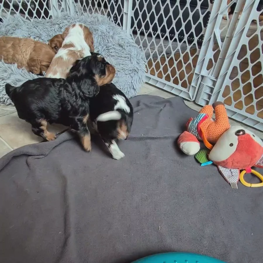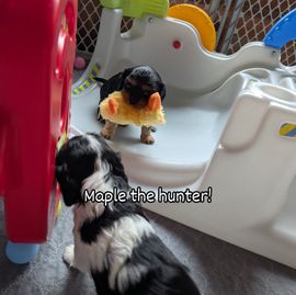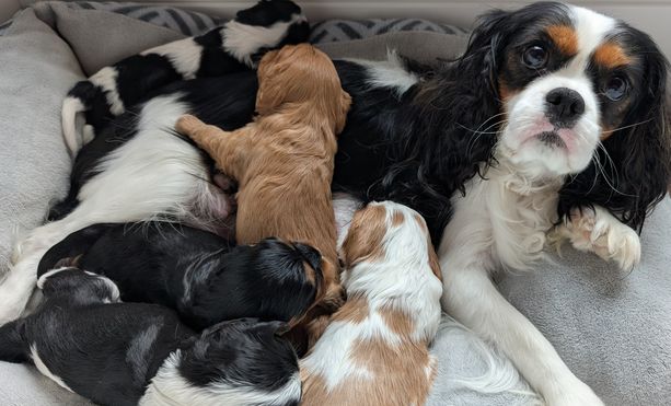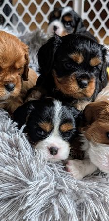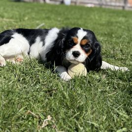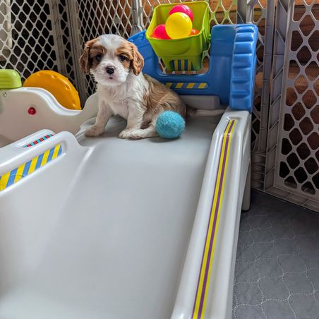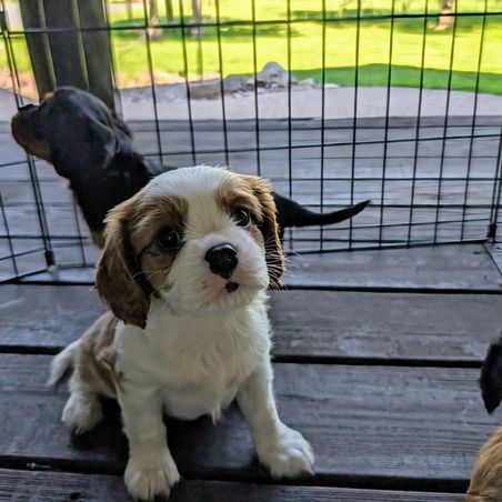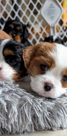 Our puppies include blenheim, ruby, black and tan, and tri-color. Colors will vary depending on the parent dogs.