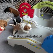Puppies are enjoying their new play center! It's fun for them and introduces different surfaces and angles as well as going under and over objects.