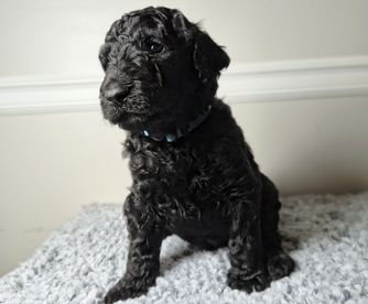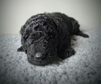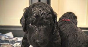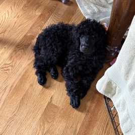 Poodle puppies include black, blue, and silver. Colors will vary depending on the parent dogs.