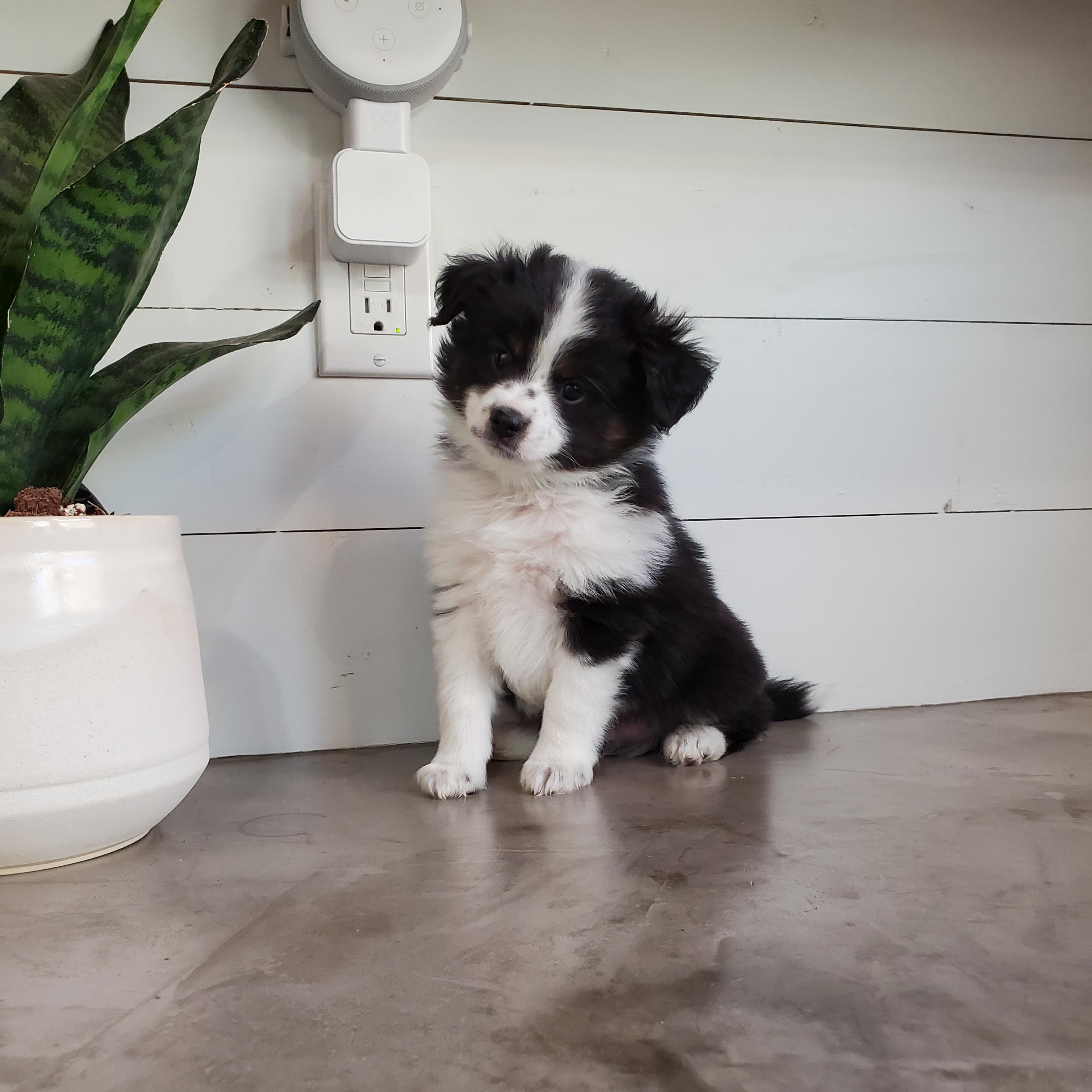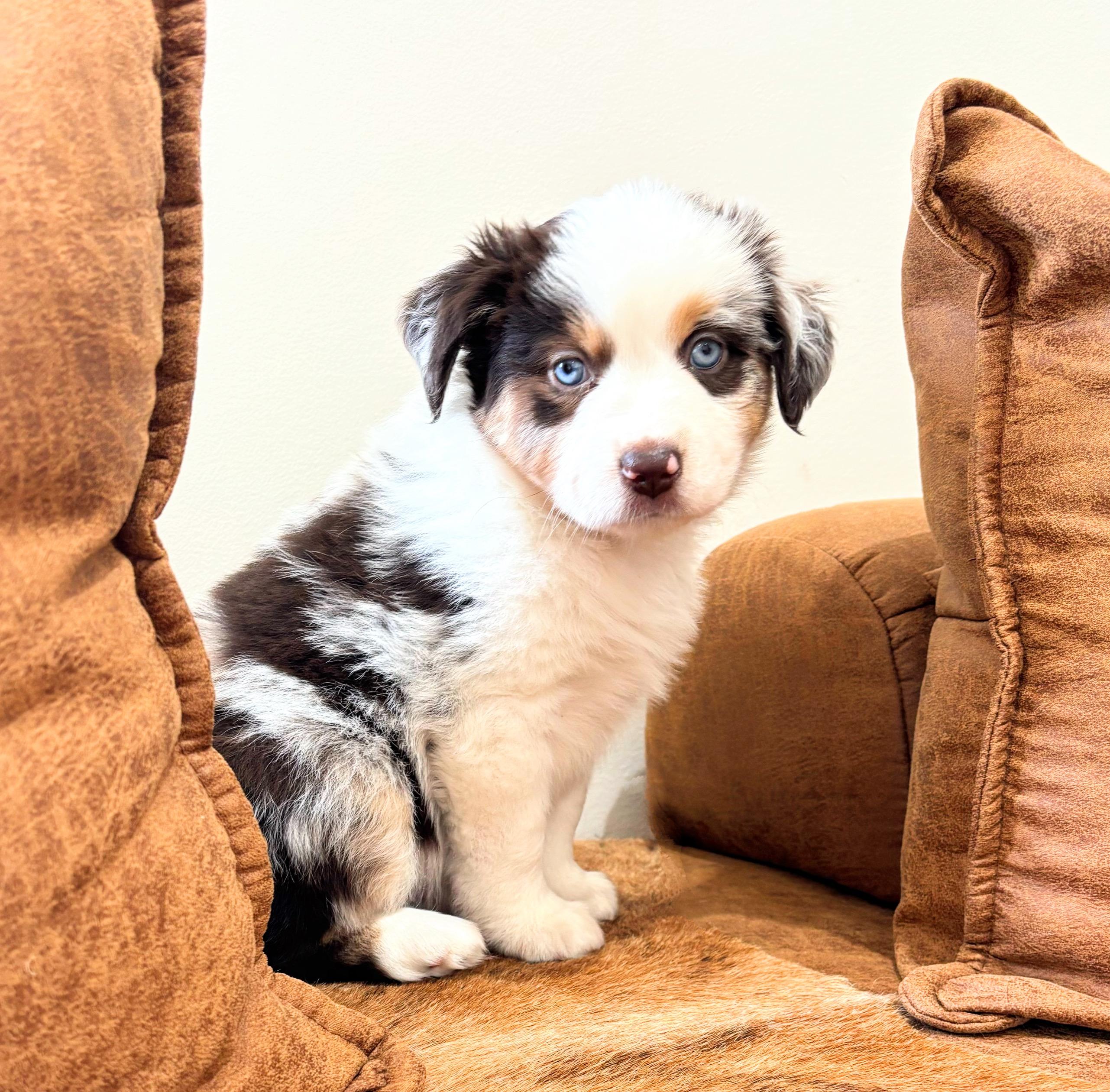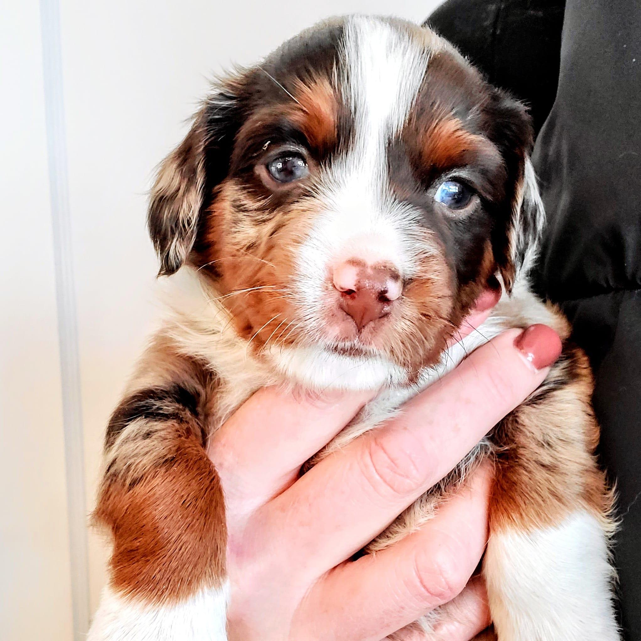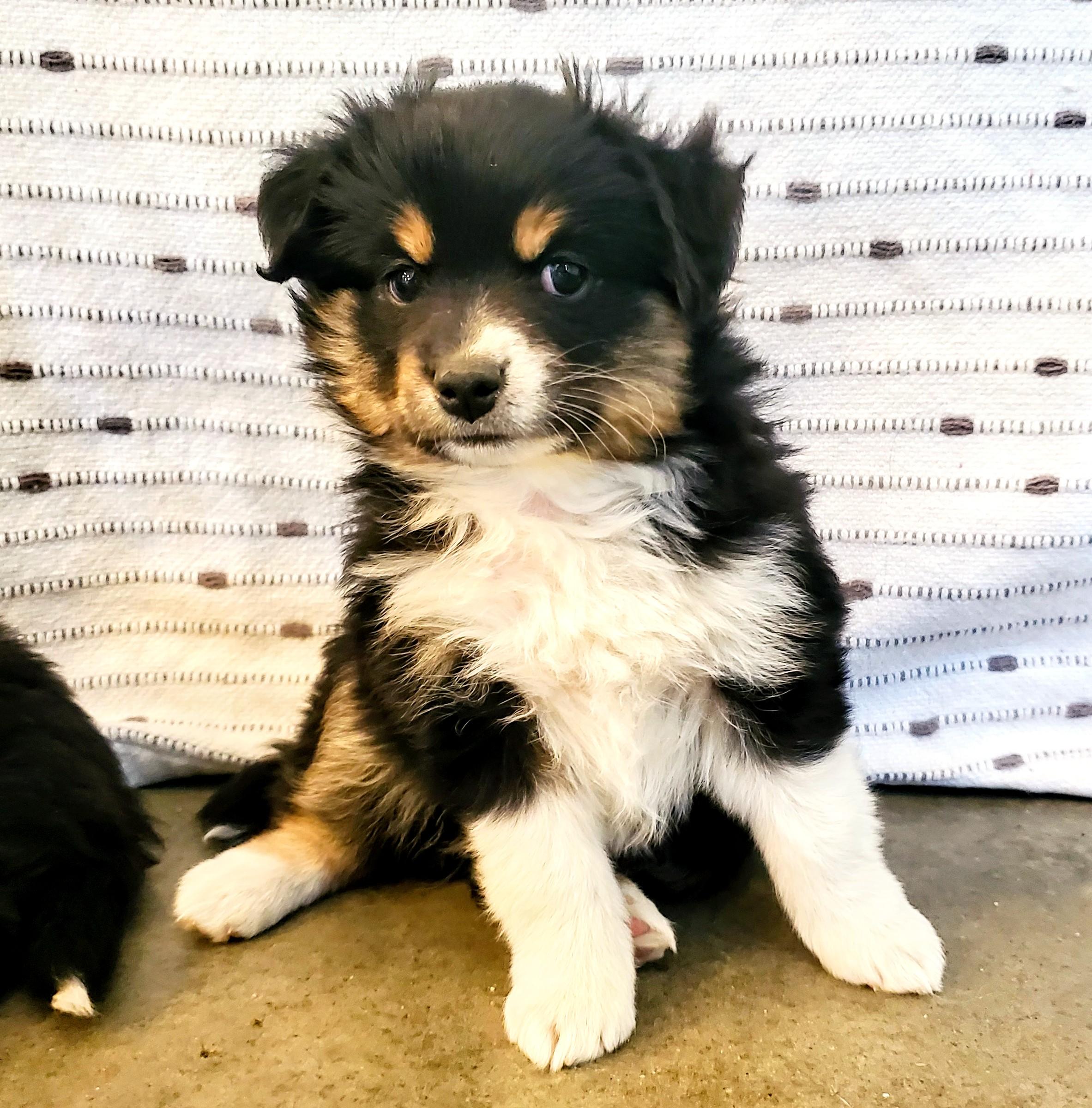 Miniature Australian Shepherd puppies include blue merle, black tri, red tri, red merle, red, and black. Miniature American Shepherd puppies include red tri-color, black tri, red merle, blue merle, and red. Colors will vary depending on the parent dogs.