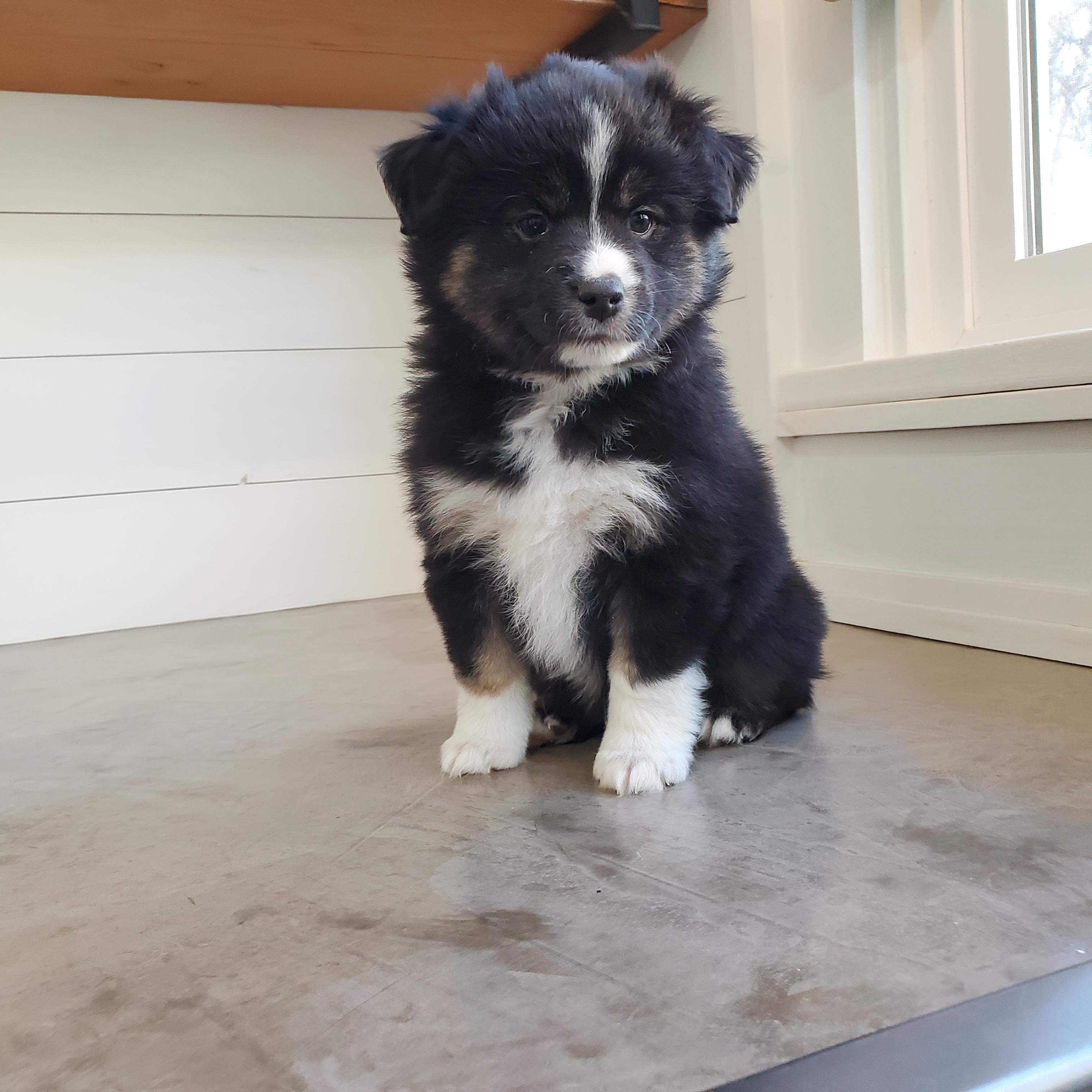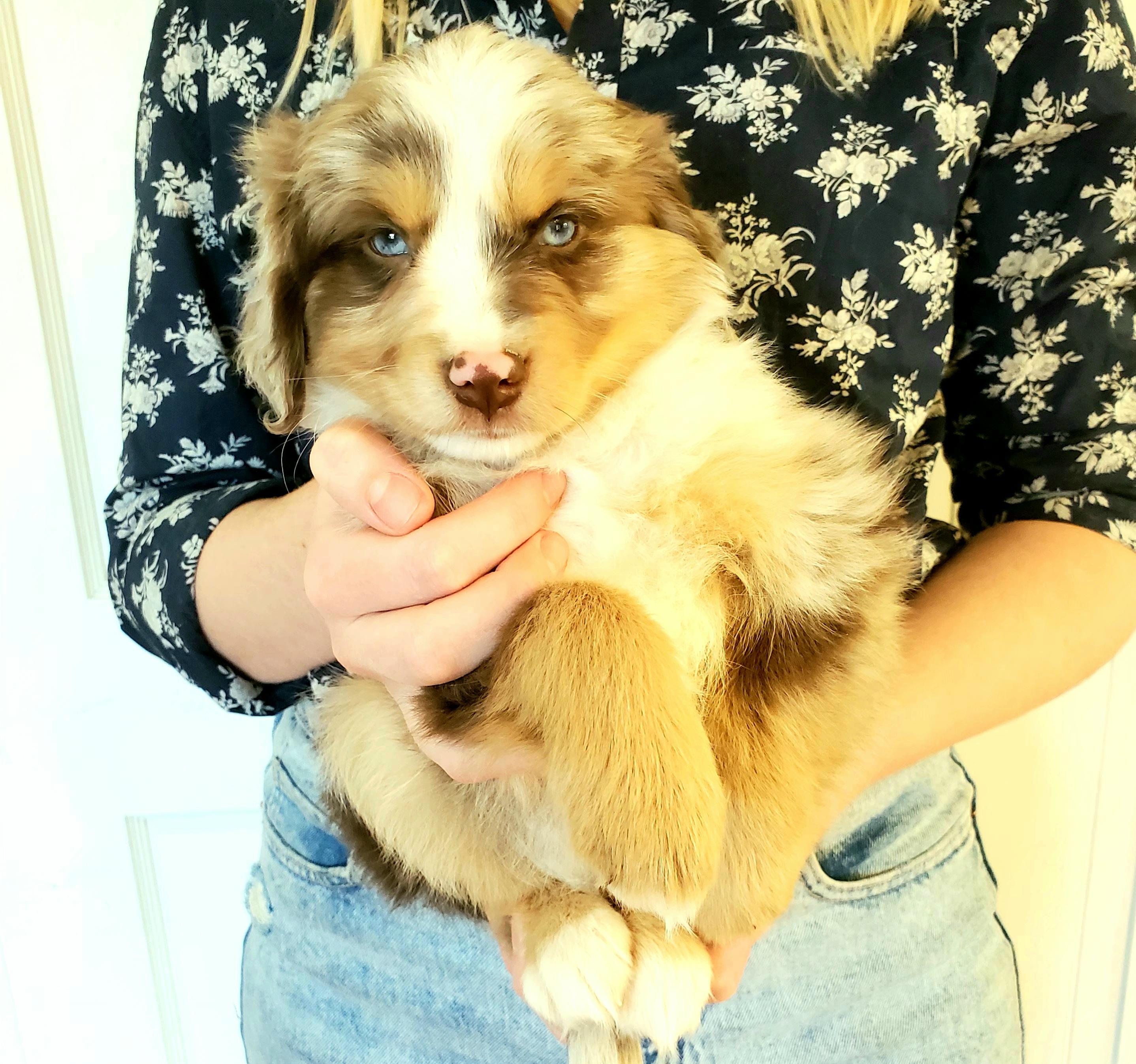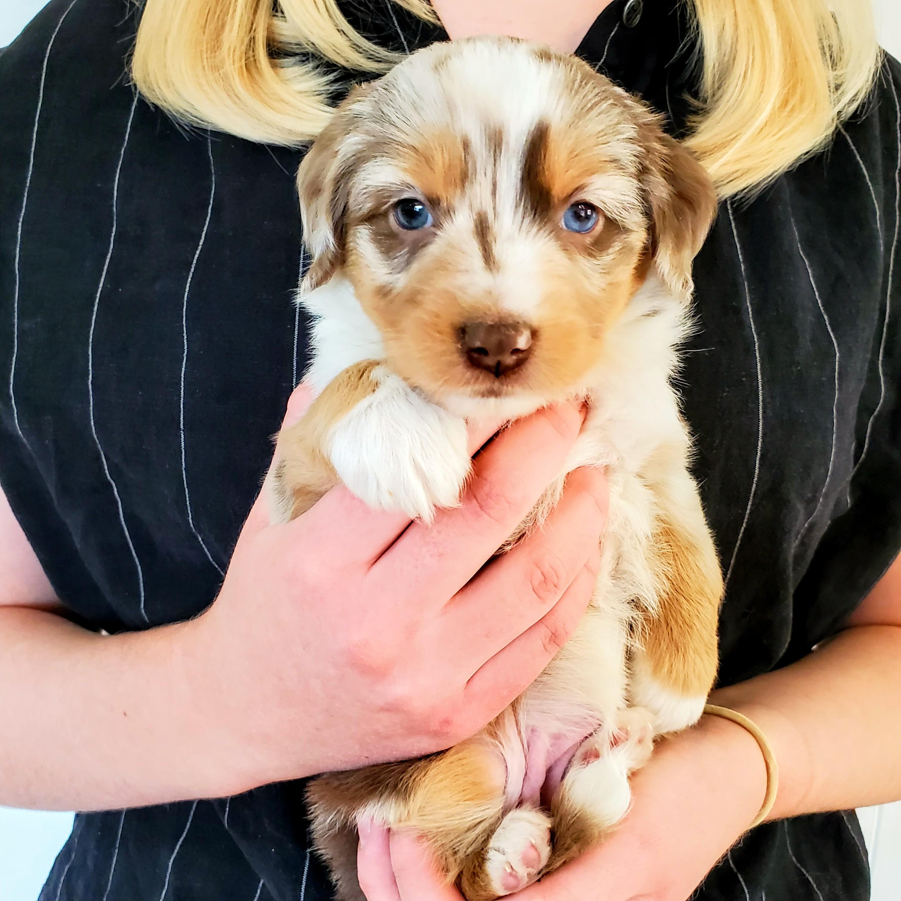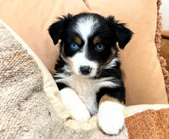 Miniature Australian Shepherd puppies include blue merle, black tri, red tri, red merle, red, and black. Miniature American Shepherd puppies include red tri-color, black tri, red merle, blue merle, and red. Colors will vary depending on the parent dogs.