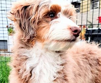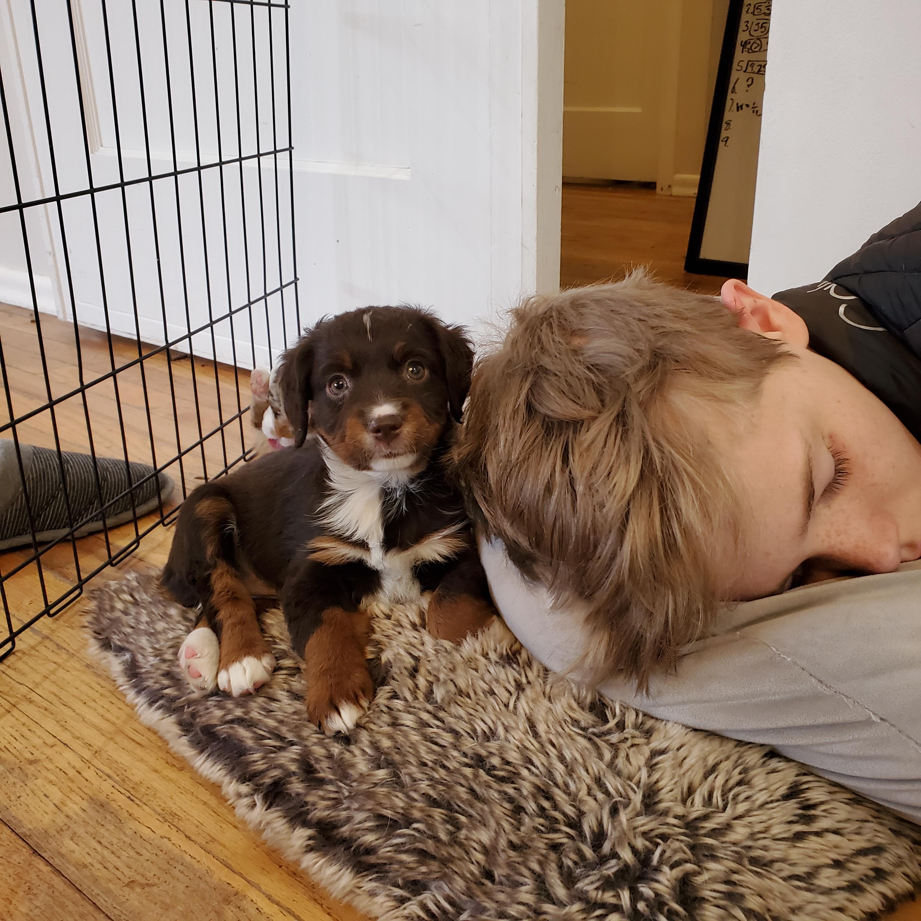 This boy is the sweetest, most friendly dog. I can't recommend his puppies strongly enough. He's great with kiddos and new people. He's always cheerful. He's easy to train and a pleasure to live with.