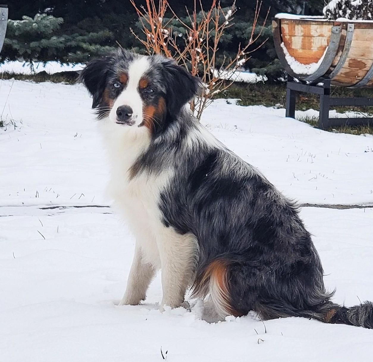 Frost is a female Miniature American Shepherd. Carefully selected as a great representative of her breed, Sarah decided to make her part of their program. Sarah has passed Good Dog’s screening process, which involved a review of their breeding practices, environment, and the mental and physical health of their dogs.