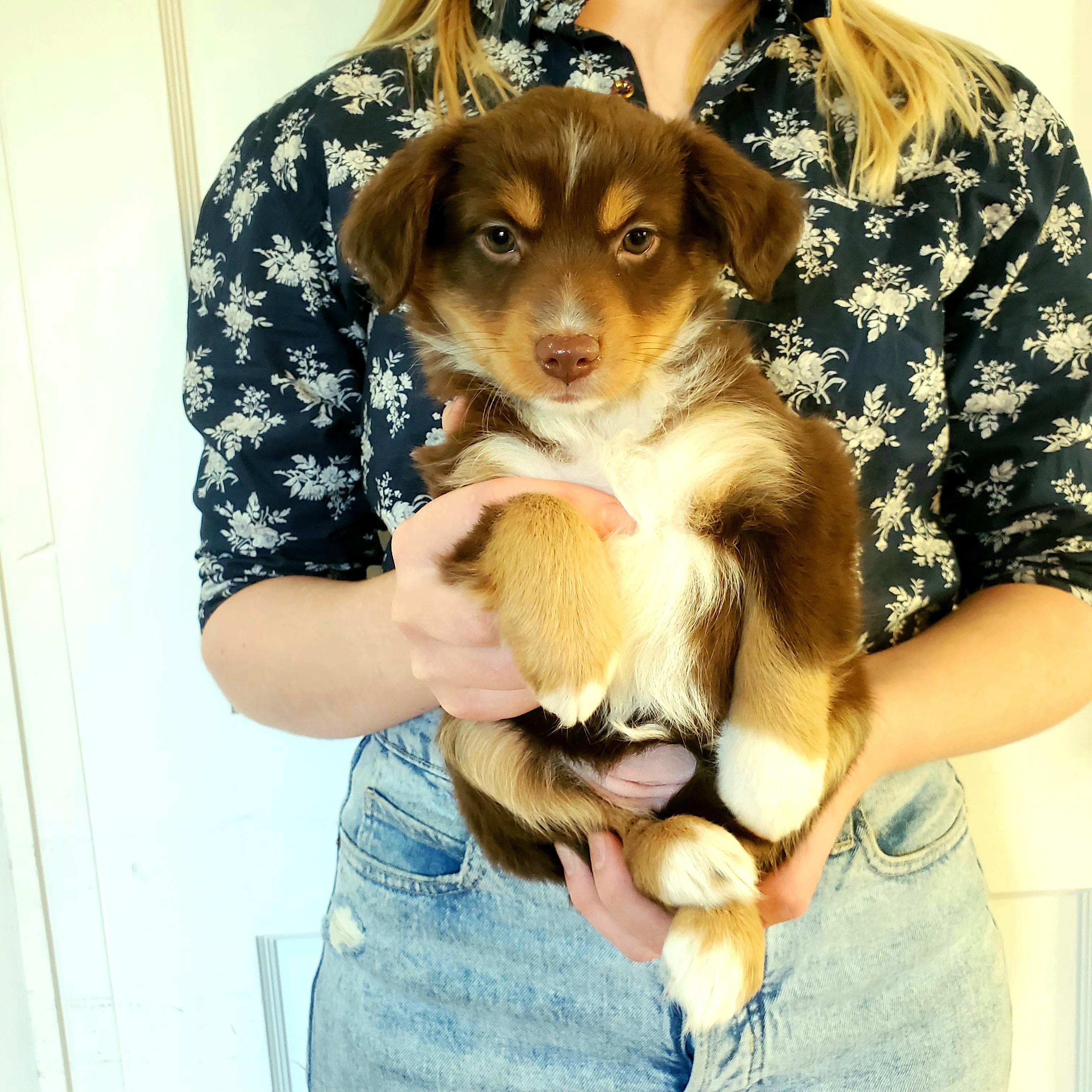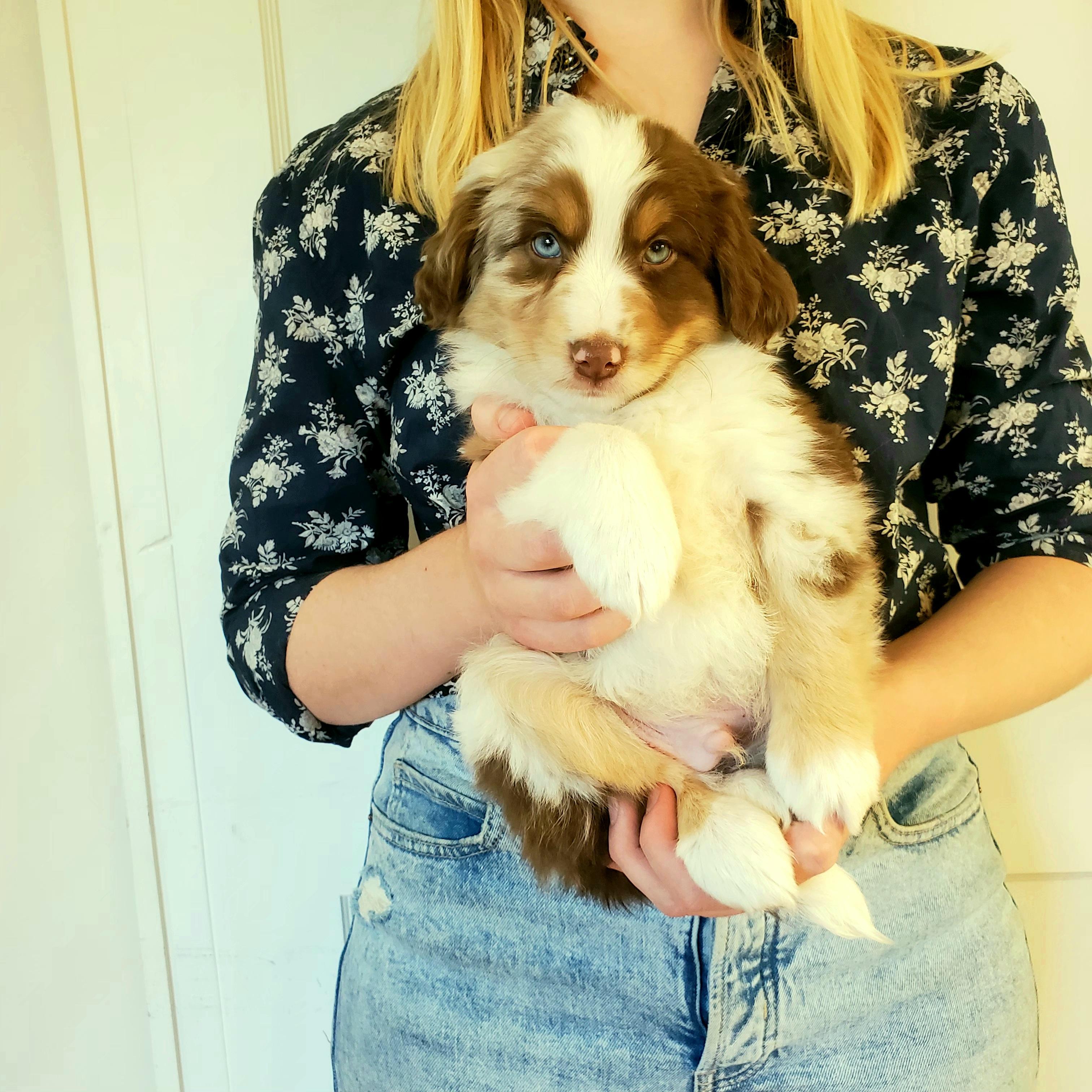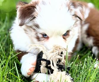 Rusty is a male Toy Australian Shepherd. Carefully selected as a great representative of his breed, Sarah decided to make him part of their program. Sarah has passed Good Dog’s screening process, which involved a review of their breeding practices, environment, and the mental and physical health of their dogs.