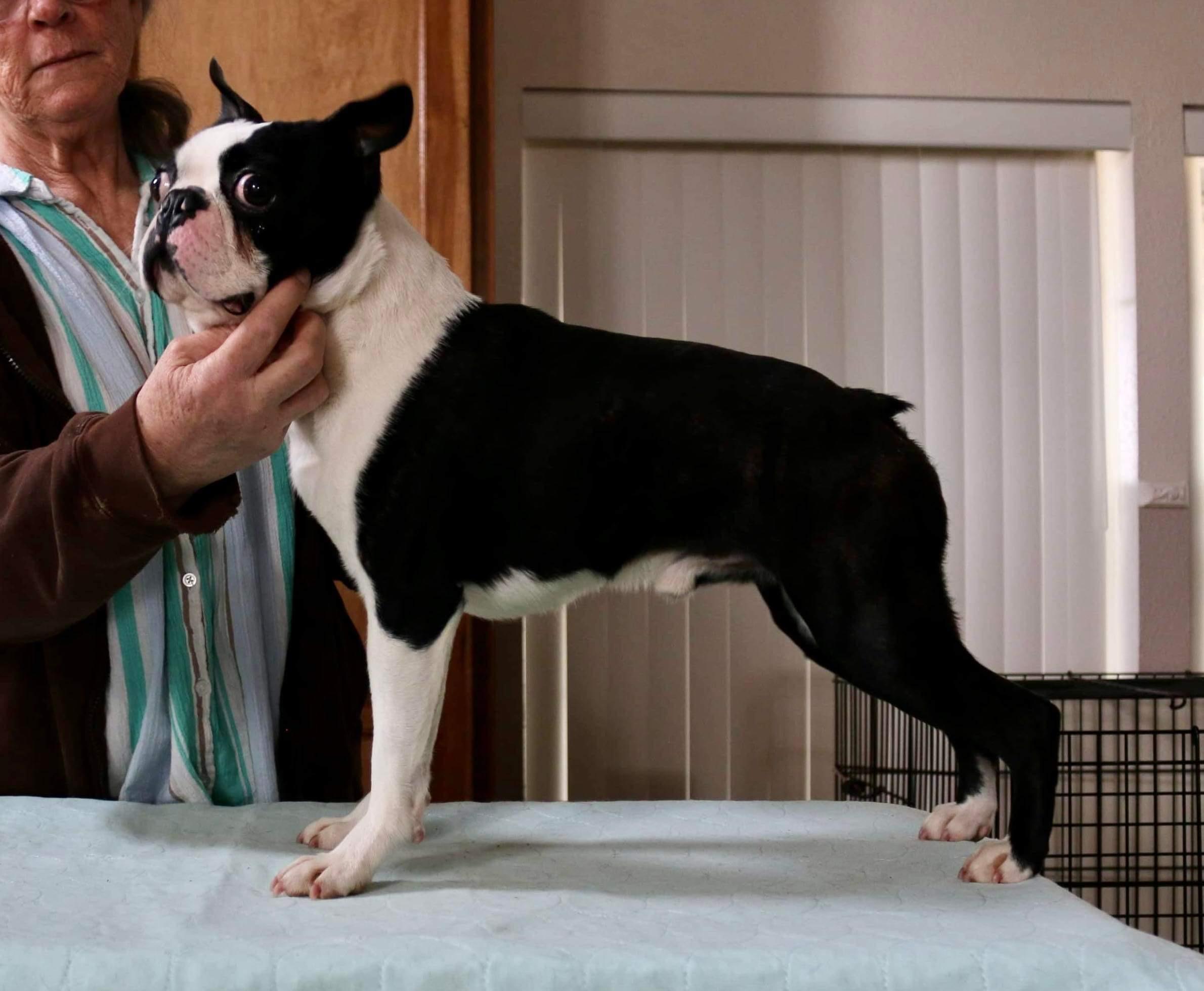 Promise is a female Boston Terrier. Carefully selected as a great representative of her breed, Laurel decided to make her part of their program. Laurel has passed Good Dog’s screening process, which involved a review of their breeding practices, environment, and the mental and physical health of their dogs.