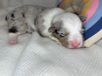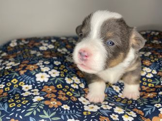 Our Pembroke Welsh Corgi puppies include sable, white and black, and white and red. American Corgi puppies include sable and white, black and white, red and white, and blue merle and white. Colors will vary depending on the parent dogs.