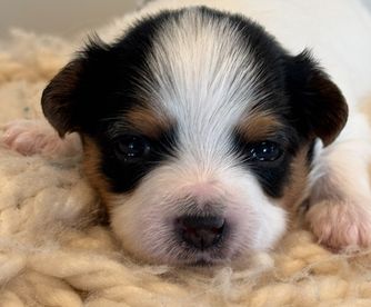 Our puppies include black brown and white, brown and white, sable, and white black and tan. Colors will vary depending on the parent dogs.