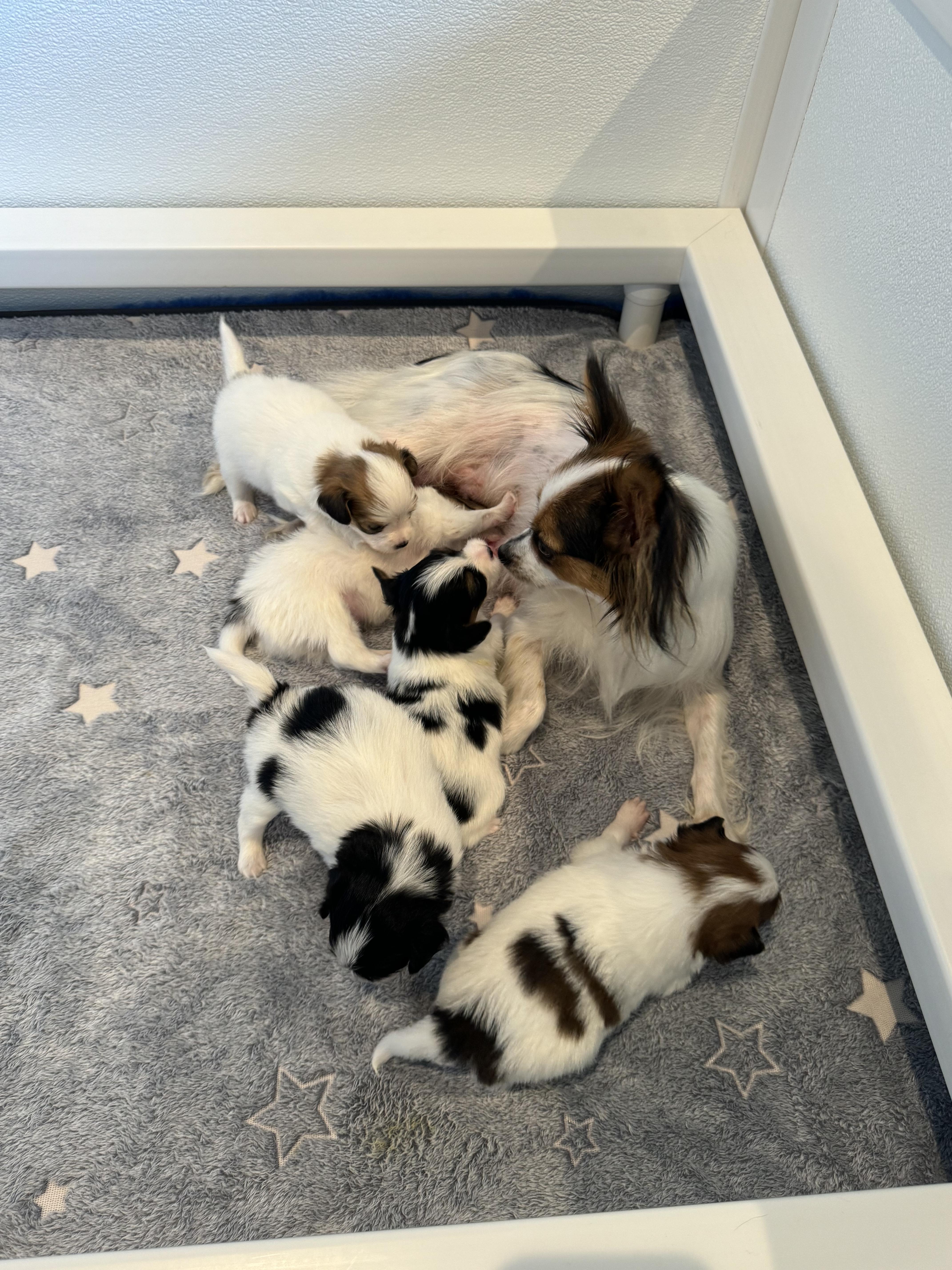We have 5 fun, healthy, smart, athletic, and sweet papillons with great confirmation. Our adult papillons and their puppies are raised in our home and loved from birth. Our kids interact with and handle the puppies daily. We introduce our puppies to different adults, kids, different environments, cars, and even boat and golf cart rides! Our goal is to raise well-rounded, and well-socialized puppies.