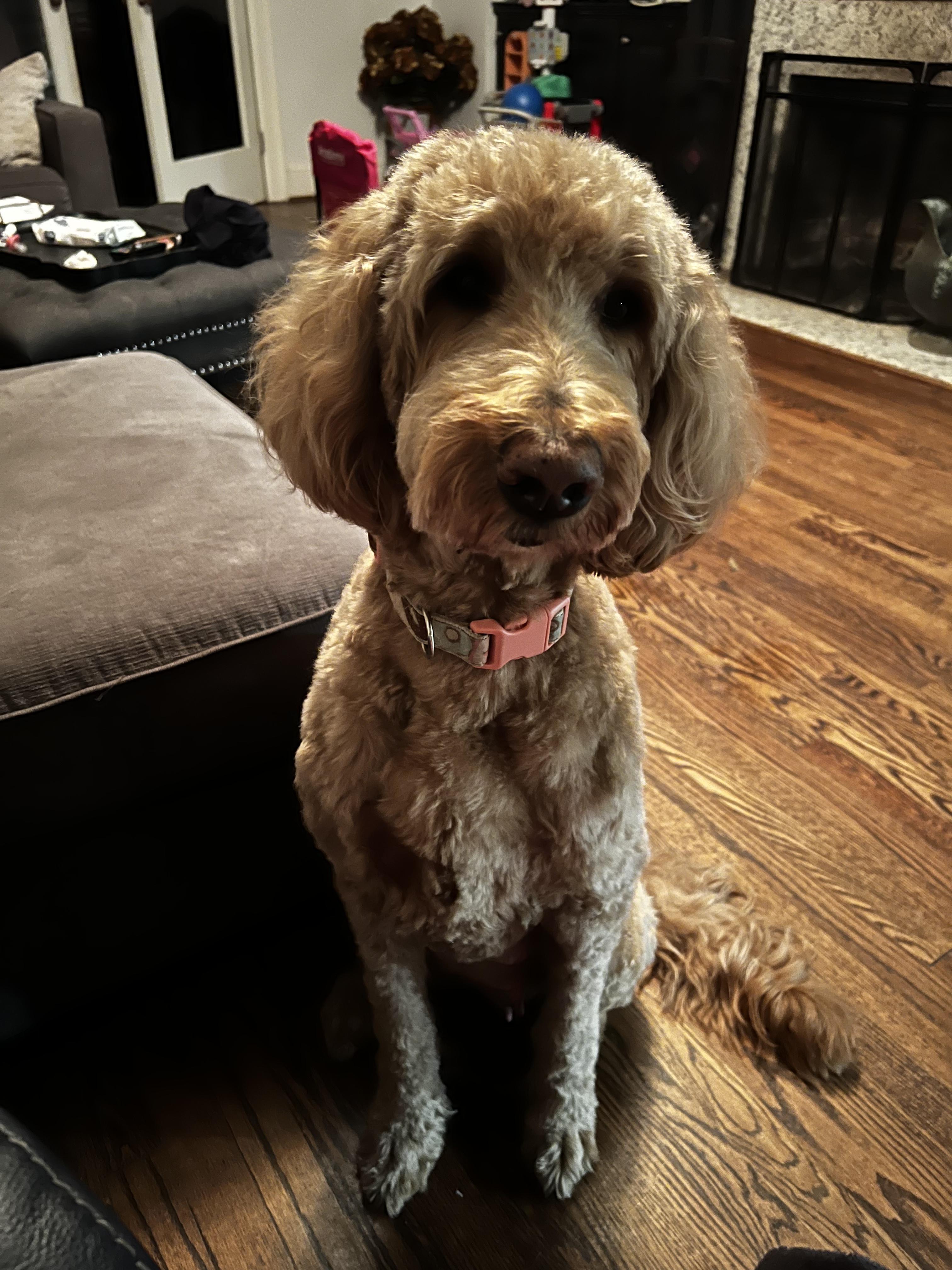 Sofie is a female Goldendoodle. Carefully selected as a great representative of her breed, Ghyslaine decided to make her part of their program. Ghyslaine has passed Good Dog’s screening process, which involved a review of their breeding practices, environment, and the mental and physical health of their dogs.