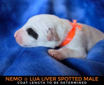 Our puppies include white and orange, white and liver brown, white and lemon, and white and black. Colors will vary depending on the parent dogs.