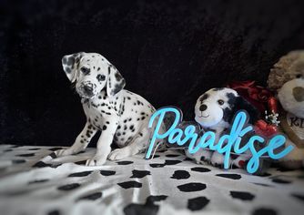 I'm Kristen F., the breeder behind Paradise Spots Dalmatians located in Salem, MO. We give our puppies the best start possible by raising them using puppy culture methods and principles. Our puppies are litter trained starting at 3 weeks and crate training starts at 4 weeks of age (ask me for details). Our puppies are ALWAYS BAER hearing tested, mocrochipped and AKC registered.