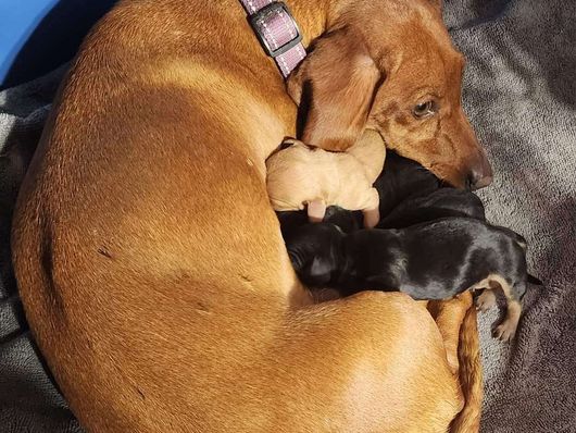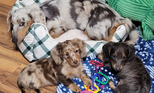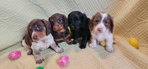 Our Dachshund puppies include smooth and longhaired coat varieties. Coat types may vary depending on the parent dogs.
