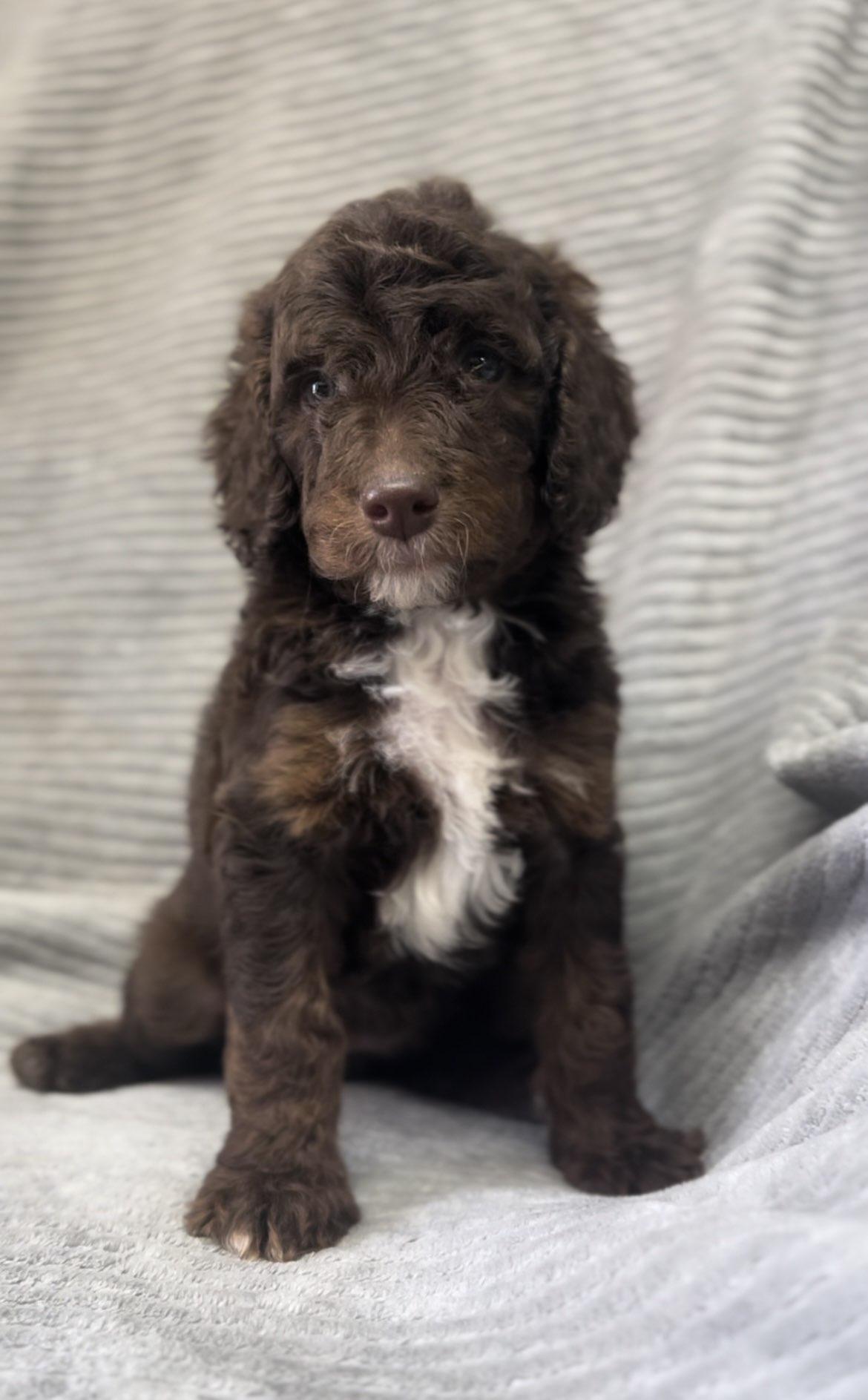 Our Goldendoodle puppies include cream, apricot, black, and phantom. Poodle puppies include sable, red, parti, phantom, and brindle. Assorted Doodle Crosses puppies include apricot, phantom, parti, black and white, and black tri-color. Bernedoodle puppies include sable, black and white, tri-color, and phantom. Colors will vary depending on the parent dogs.
