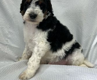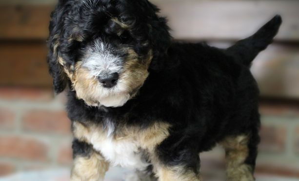 Our Bernedoodle puppies include sable, black and white, tri-color, and phantom. Goldendoodle puppies include cream, apricot, black, and phantom. Poodle puppies include sable, red, parti, phantom, and brindle. Assorted Doodle Crosses puppies include apricot, phantom, parti, black and white, and black tri-color. Colors will vary depending on the parent dogs.