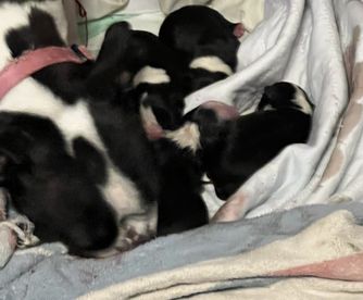 Our puppies are black and white. Colors will vary depending on the parent dogs.