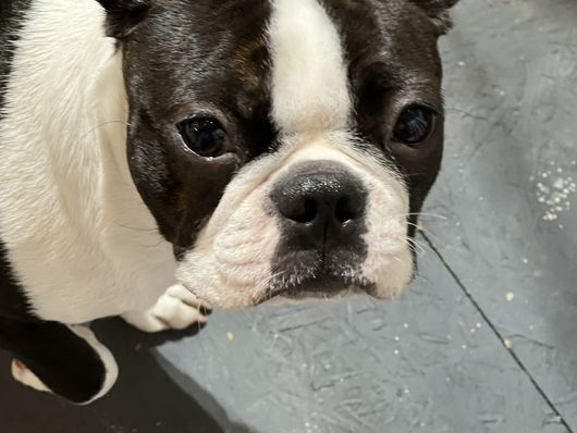 Buddy is a male Boston Terrier. Carefully selected as a great representative of his breed, Tina decided to make him part of their program. Tina has passed Good Dog’s screening process, which involved a review of their breeding practices, environment, and the mental and physical health of their dogs.