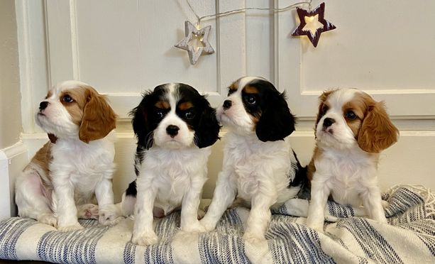 Our puppies include blenheim and tri-color. Colors will vary depending on the parent dogs.