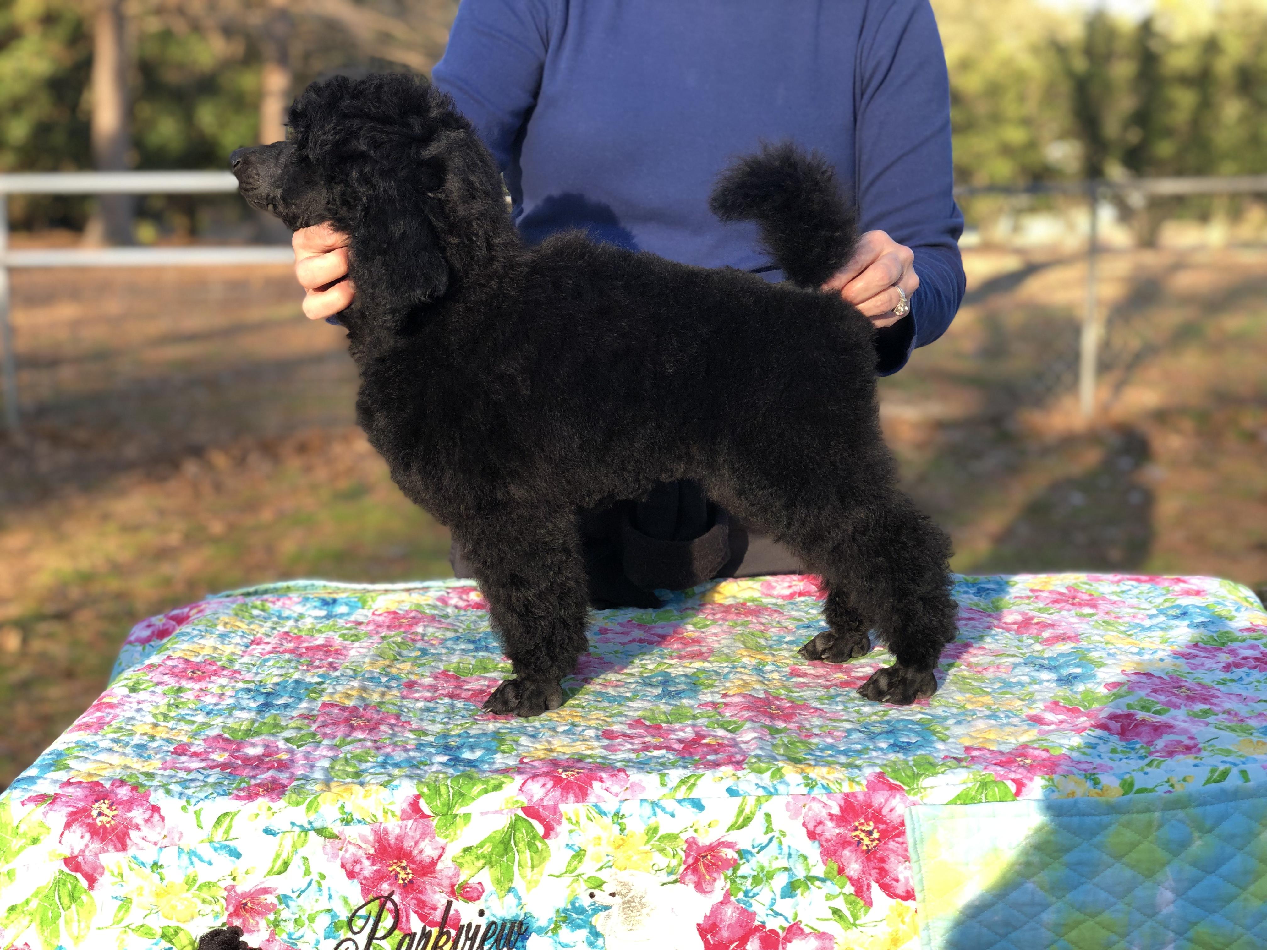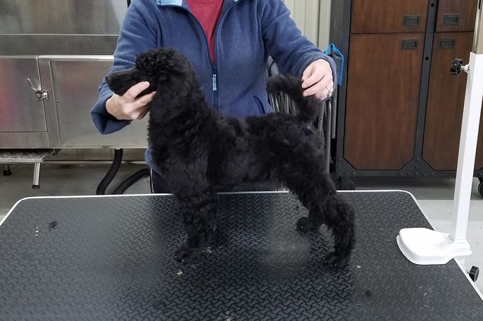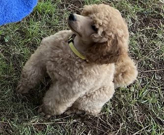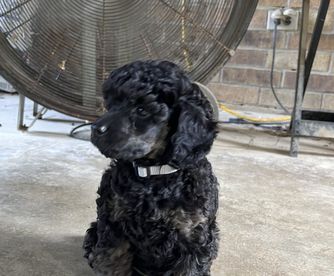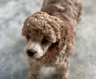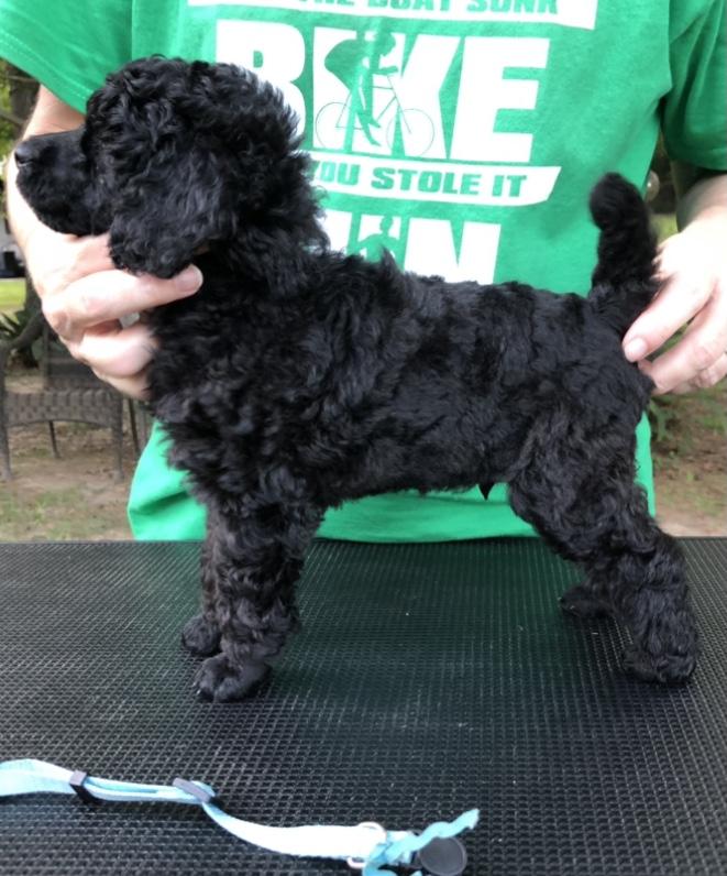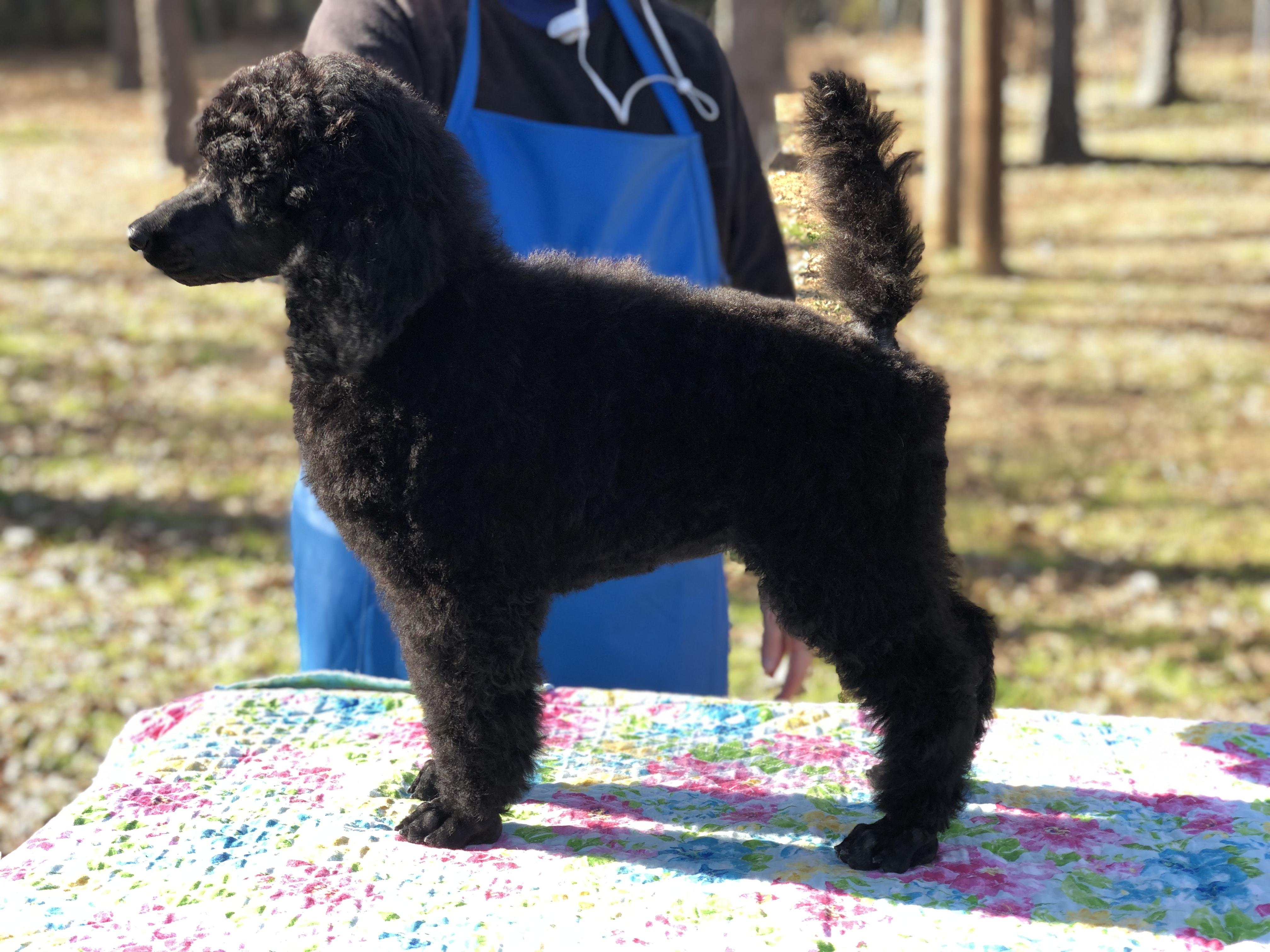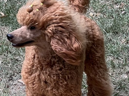 Rosalie moderate energy with a great off switch. She has fabulous poodle hair which is thick and coarse.