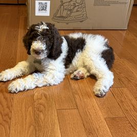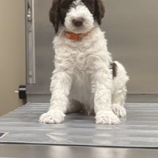 Bentley is a AKC/CKC brown/white parti standard poodle with a great temperament loves his children and family. Very Intuitive. Loyal, Intelligent, Loving Best dog ever.OFA and Embark cleared